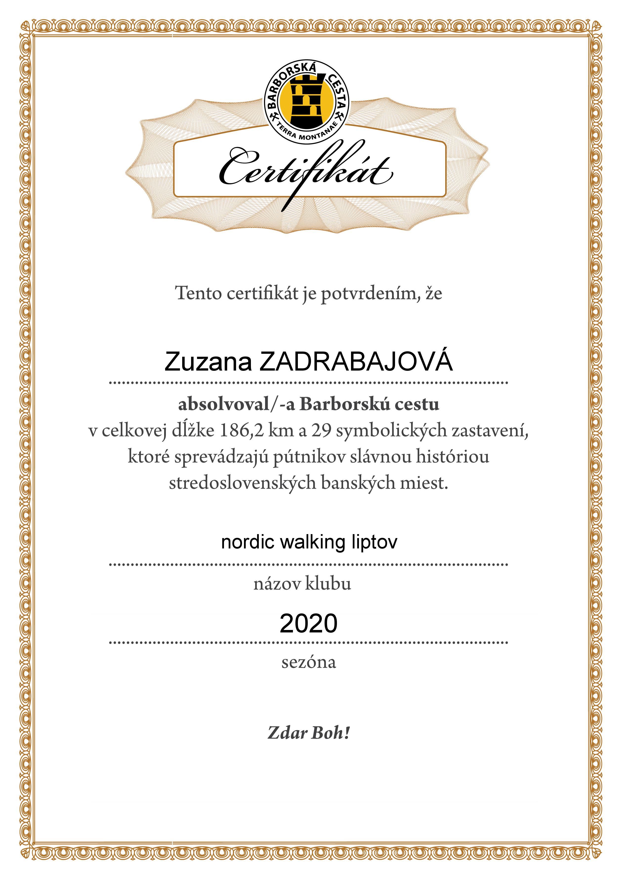 Spoznaj sám seba – prvá finišerská výzva pre nordic walkerov v roku 2020. Podstatou výzvy je absolvovanie historicky známej Barborskej cesty technikou nordic walking. Trasa pozostáva s deviatich etáp, ktoré sú vyšpecifikované v popise trasy. Okrem poznávania krásnej slovenskej prírody, historických miest a kultúrnych pamiatok je to príležitosť poznať najmä sám seba. Svoju telesnú i psychickú kondíciu, myslenie i hodnoty.
