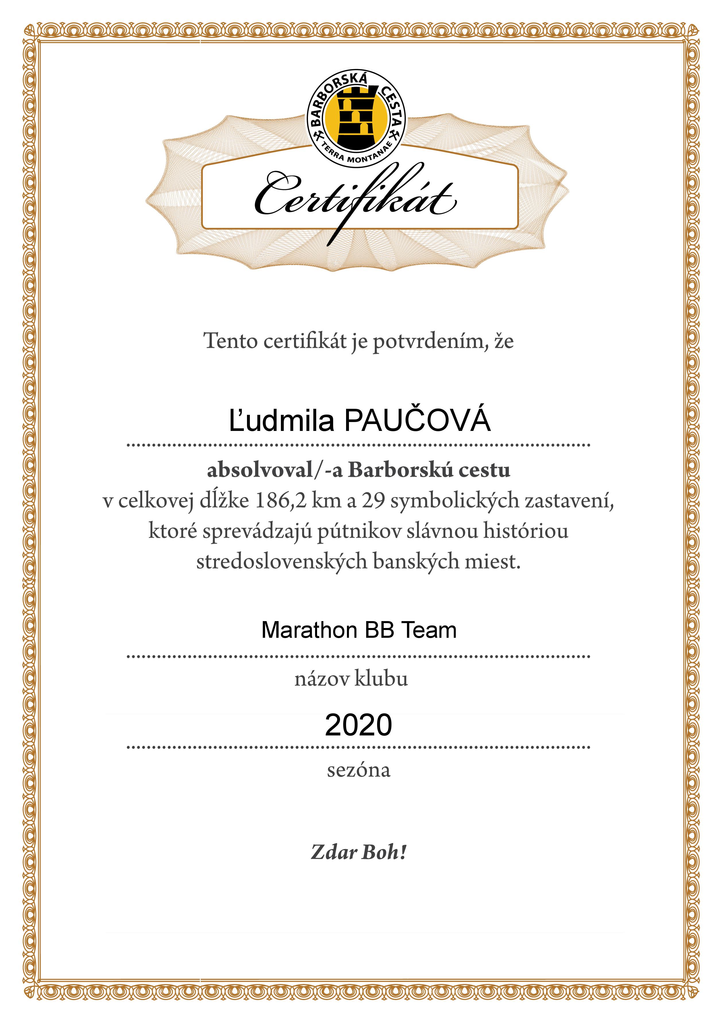 Účastnícky list pretekára PAUČOVÁ Ľudmila