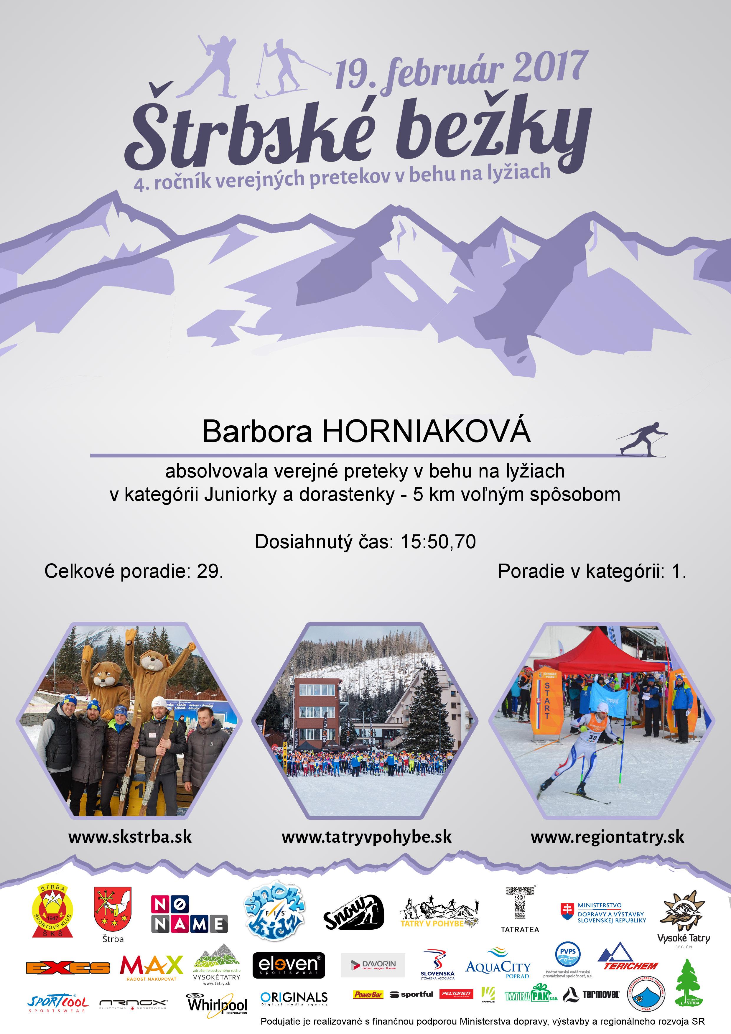 Účastnícky list pretekára HORNIAKOVÁ Barbora