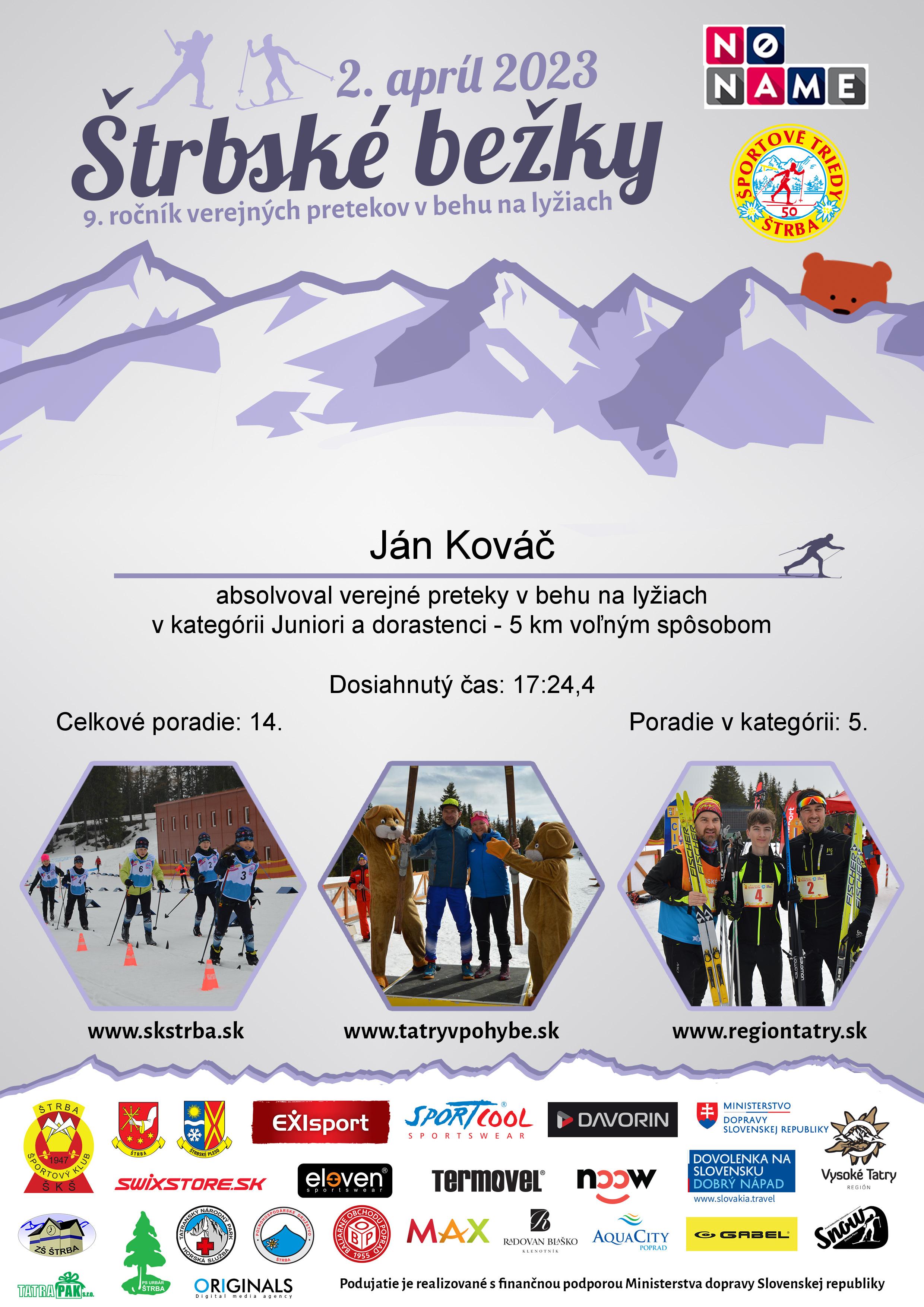Účastnícky list pretekára Kováč Ján