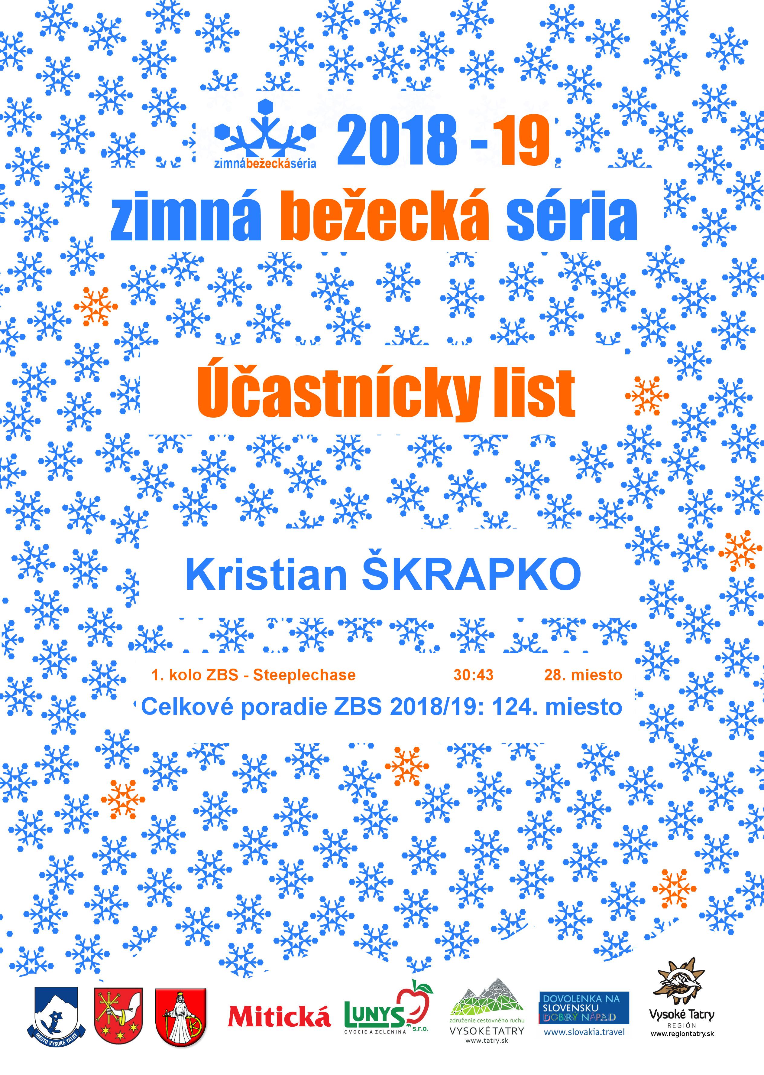Účastnícky list pretekára ŠKRAPKO Kristian