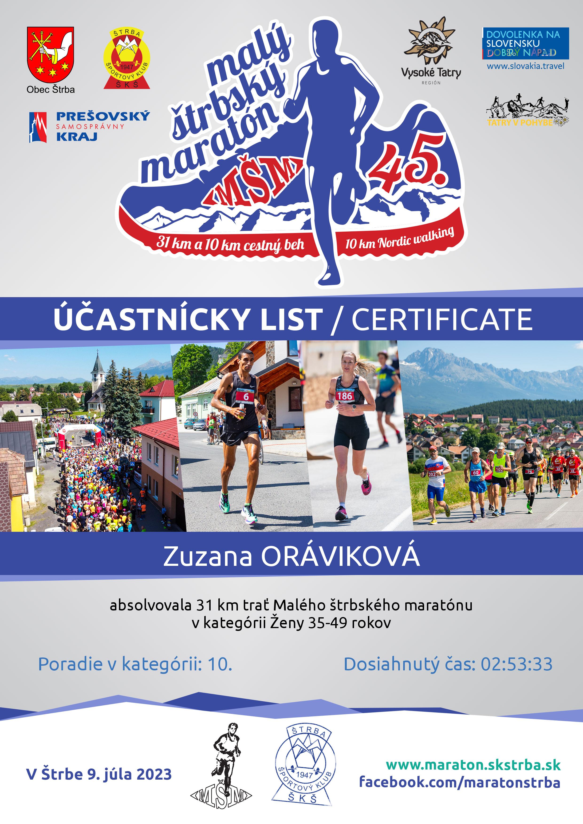 Účastnícky list pretekára ORÁVIKOVÁ Zuzana