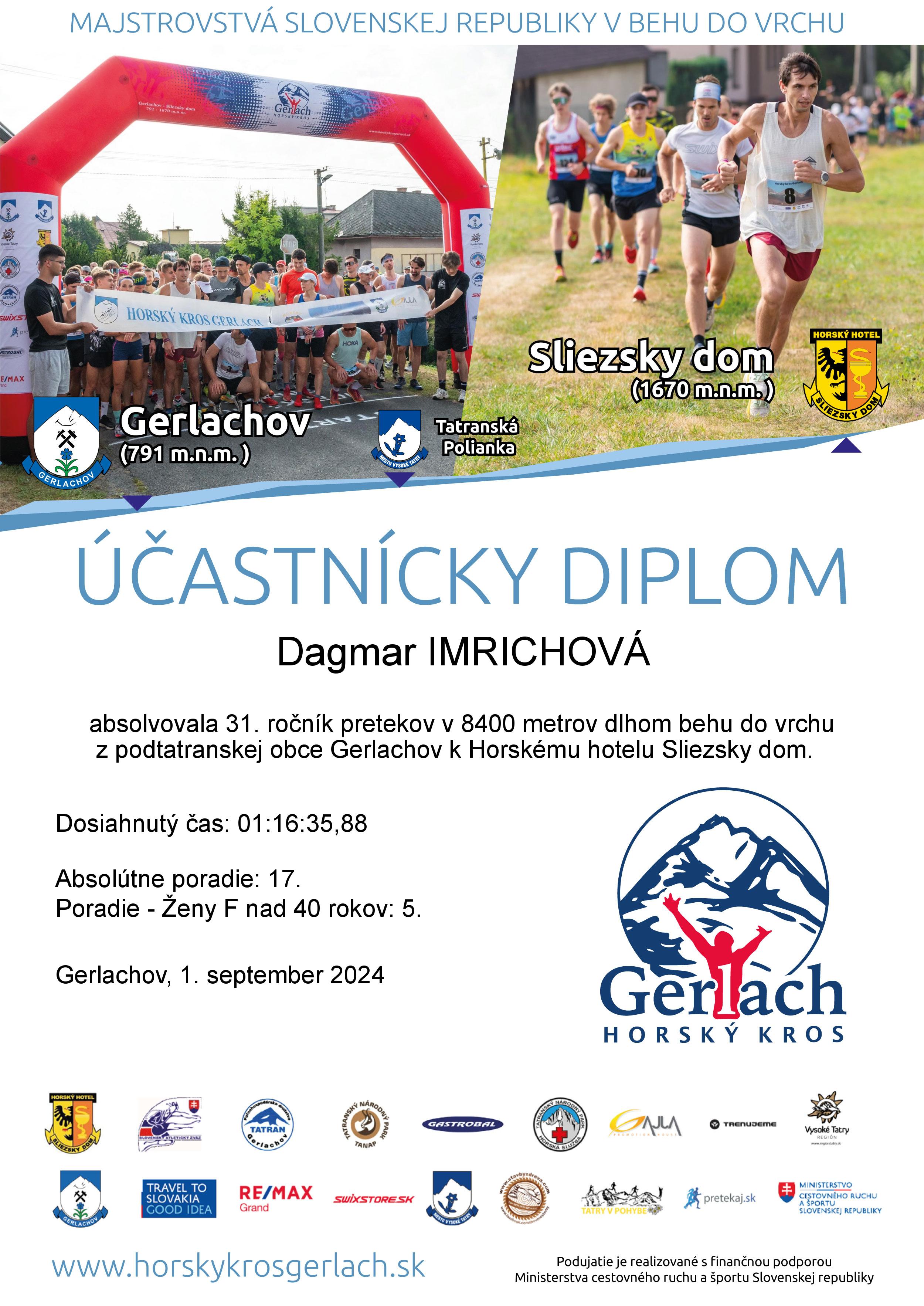 Účastnícky list pretekára IMRICHOVÁ Dagmar