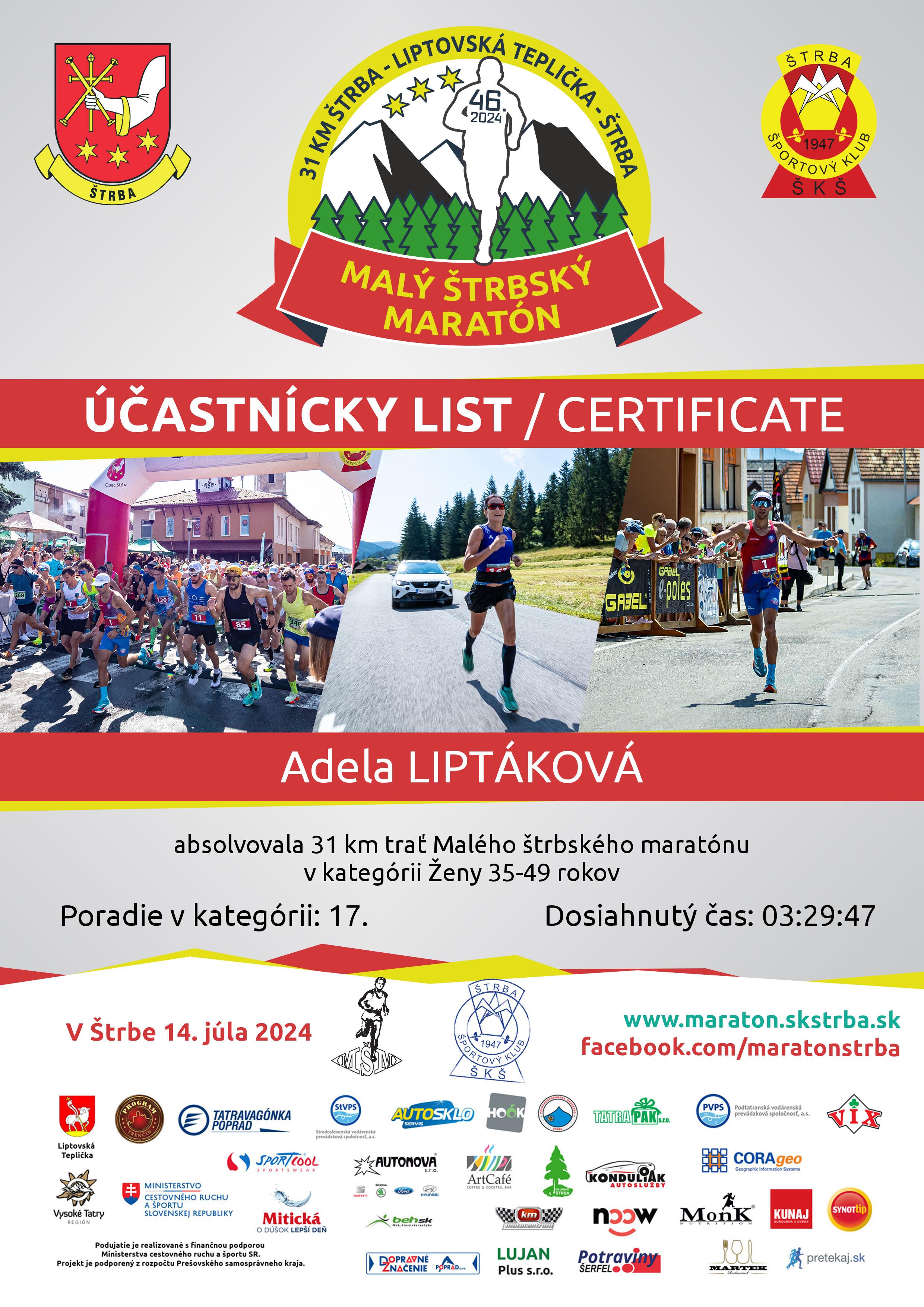 Účastnícky list pretekára LIPTÁKOVÁ Adela