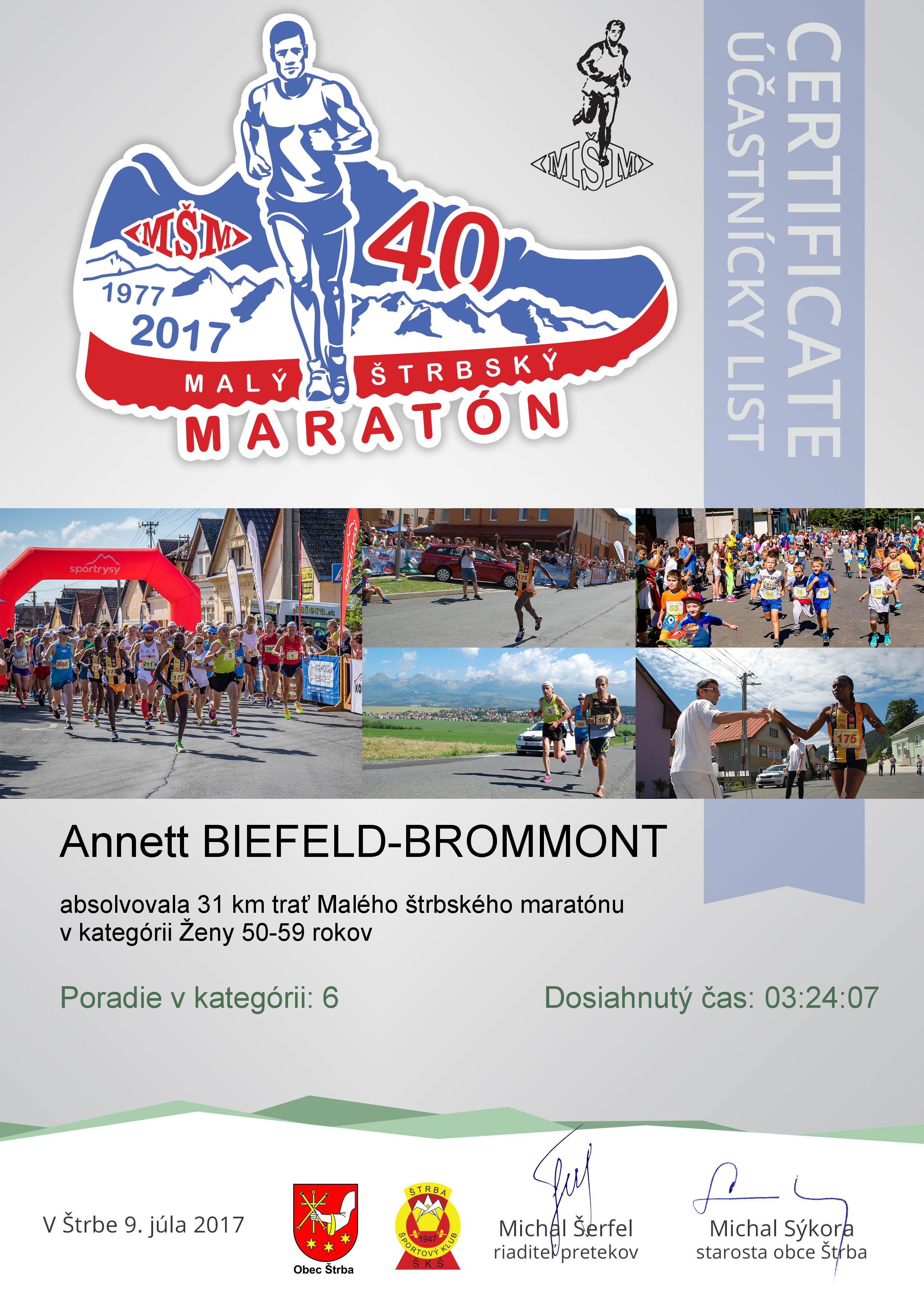 Účastnícky list pretekára BIEFELD-BROMMONT Annett