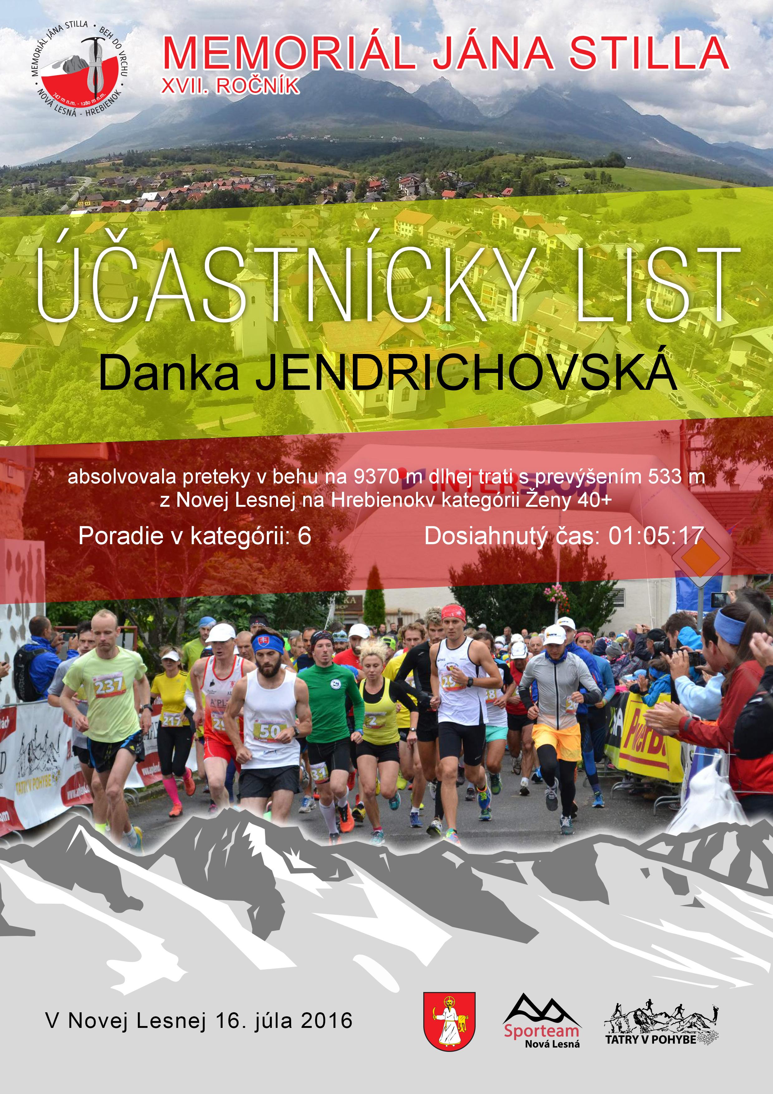 Účastnícky list pretekára JENDRICHOVSKÁ Danka
