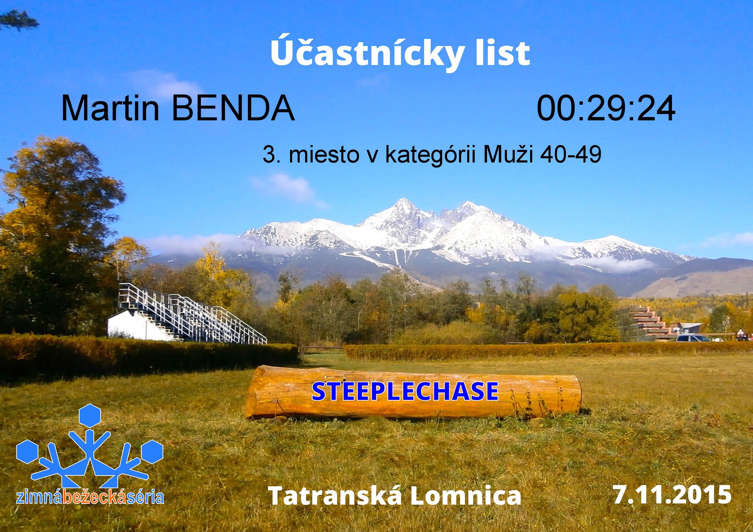 Účastnícky list pretekára BENDA Martin