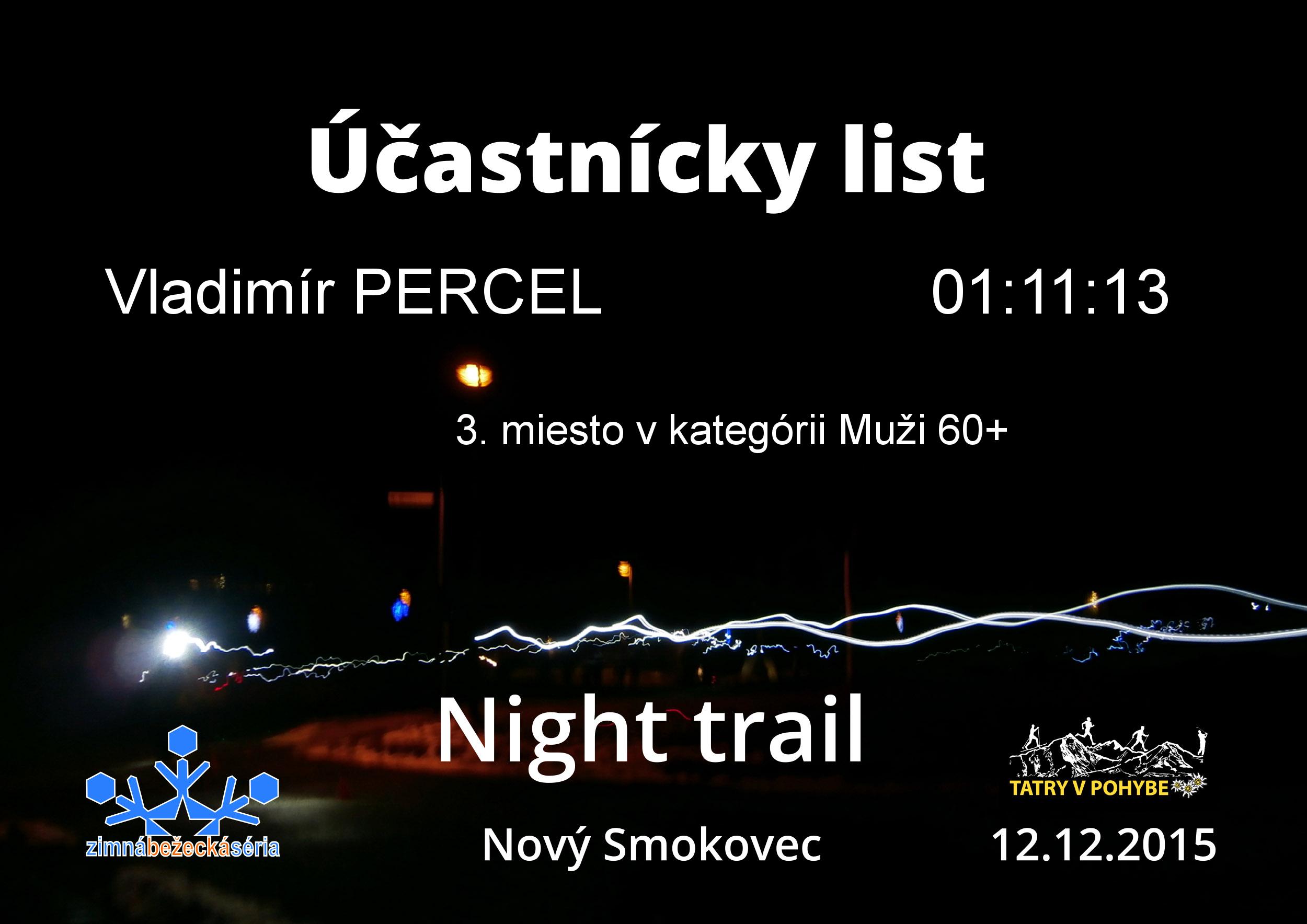 Účastnícky list pretekára PERCEL Vladimír