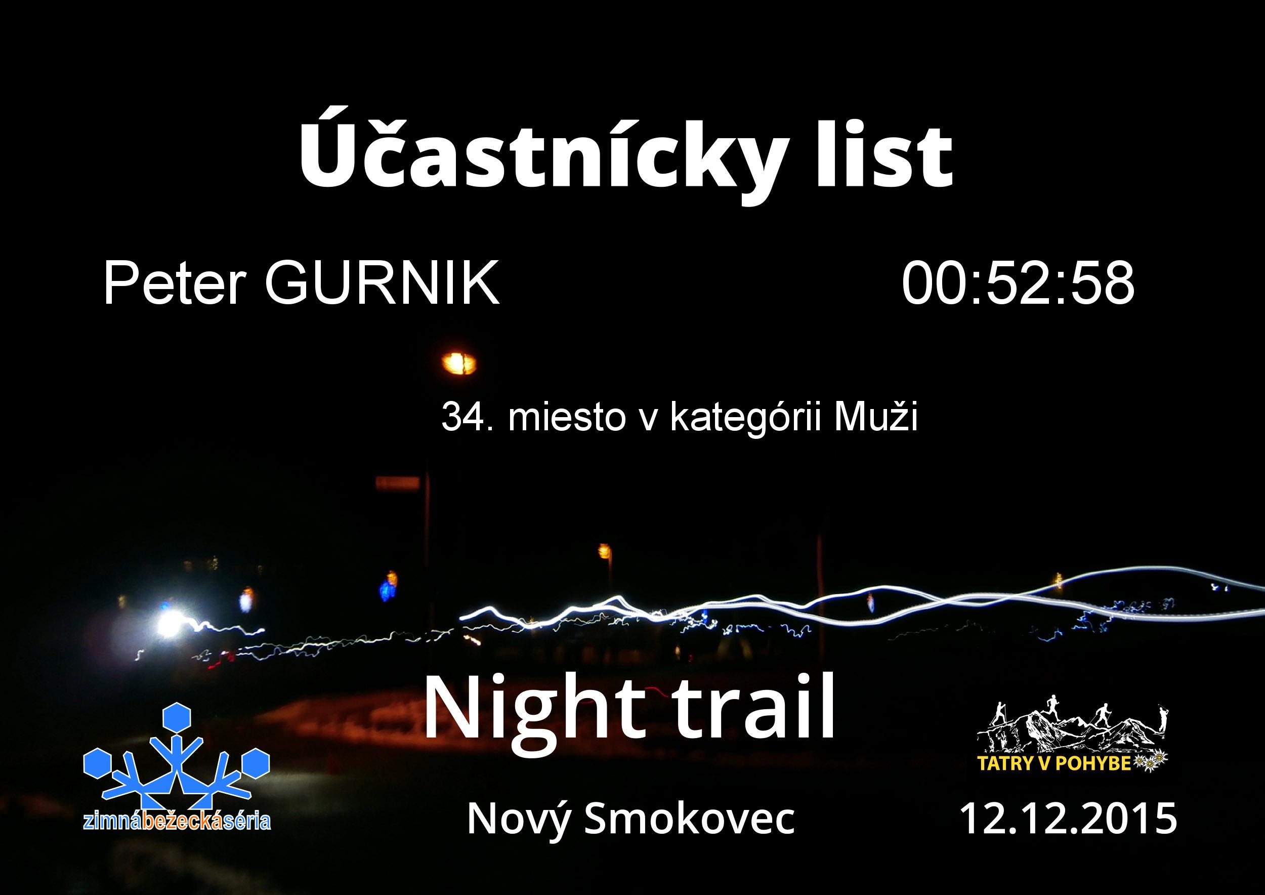 Účastnícky list pretekára GURNIK Peter