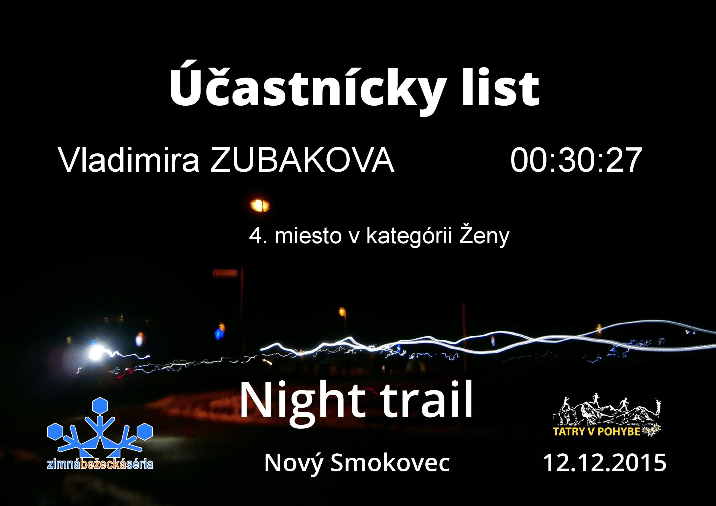 Účastnícky list pretekára ZUBAKOVA Vladimira