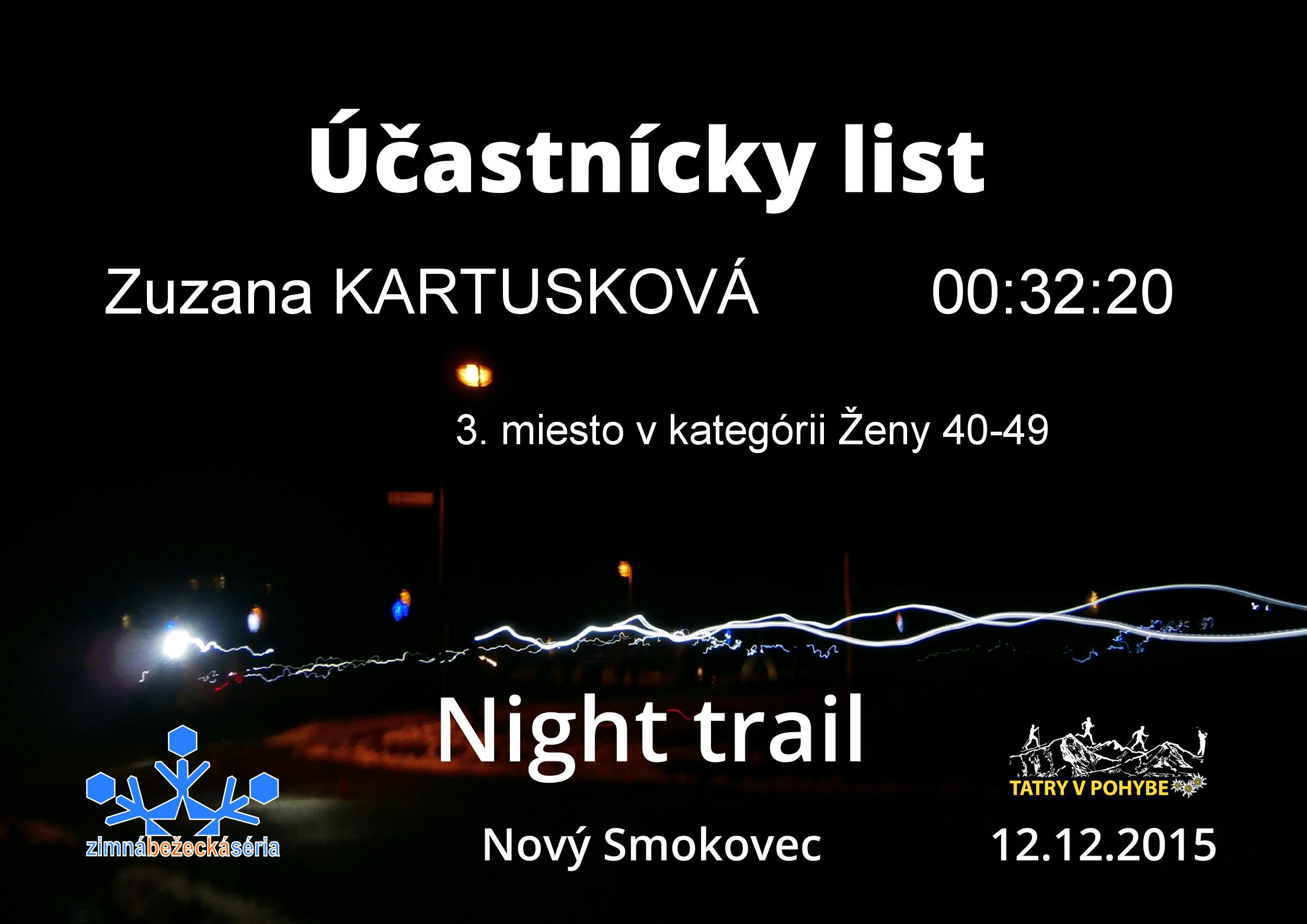 Účastnícky list pretekára KARTUSKOVÁ Zuzana