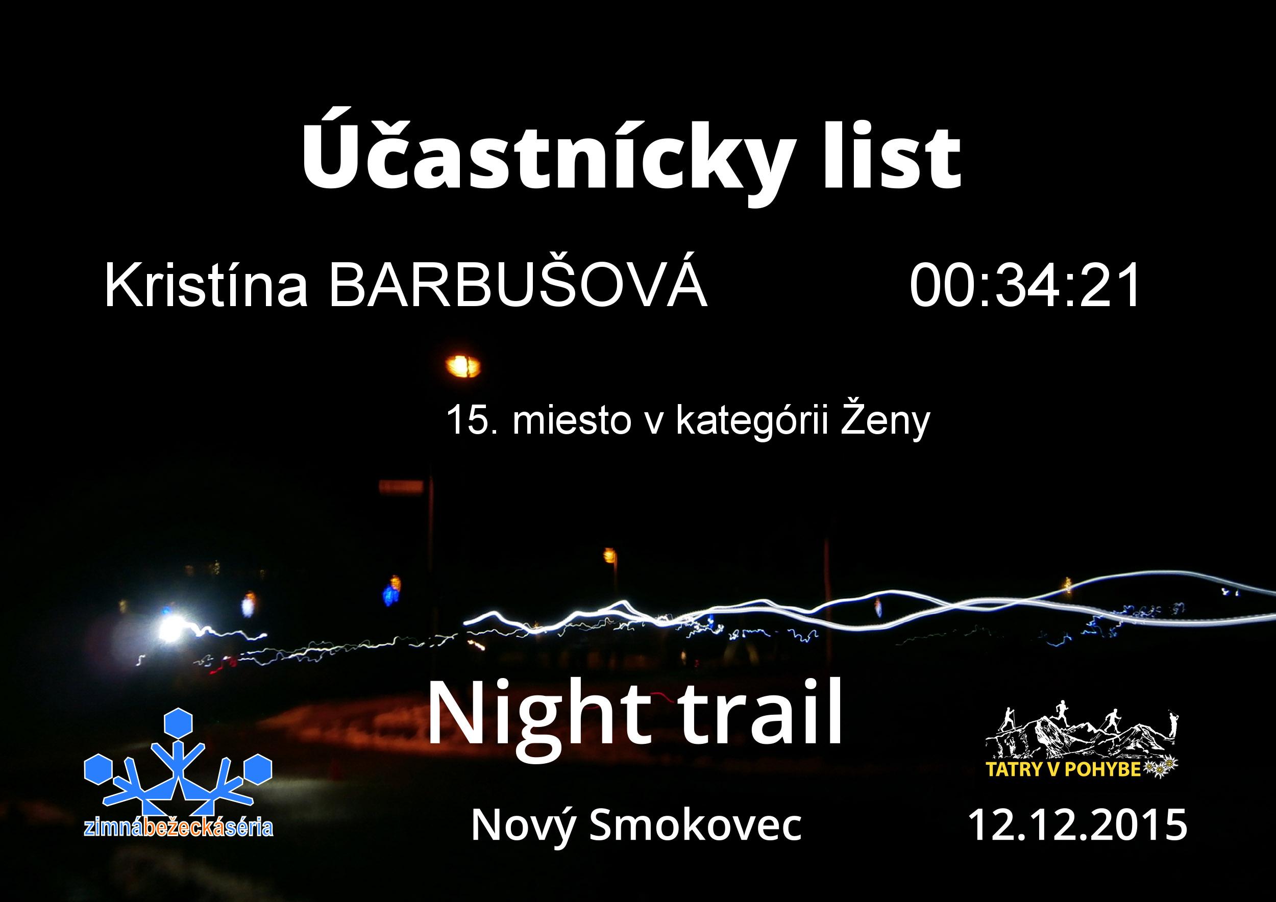 Účastnícky list pretekára BARBUŠOVÁ Kristína