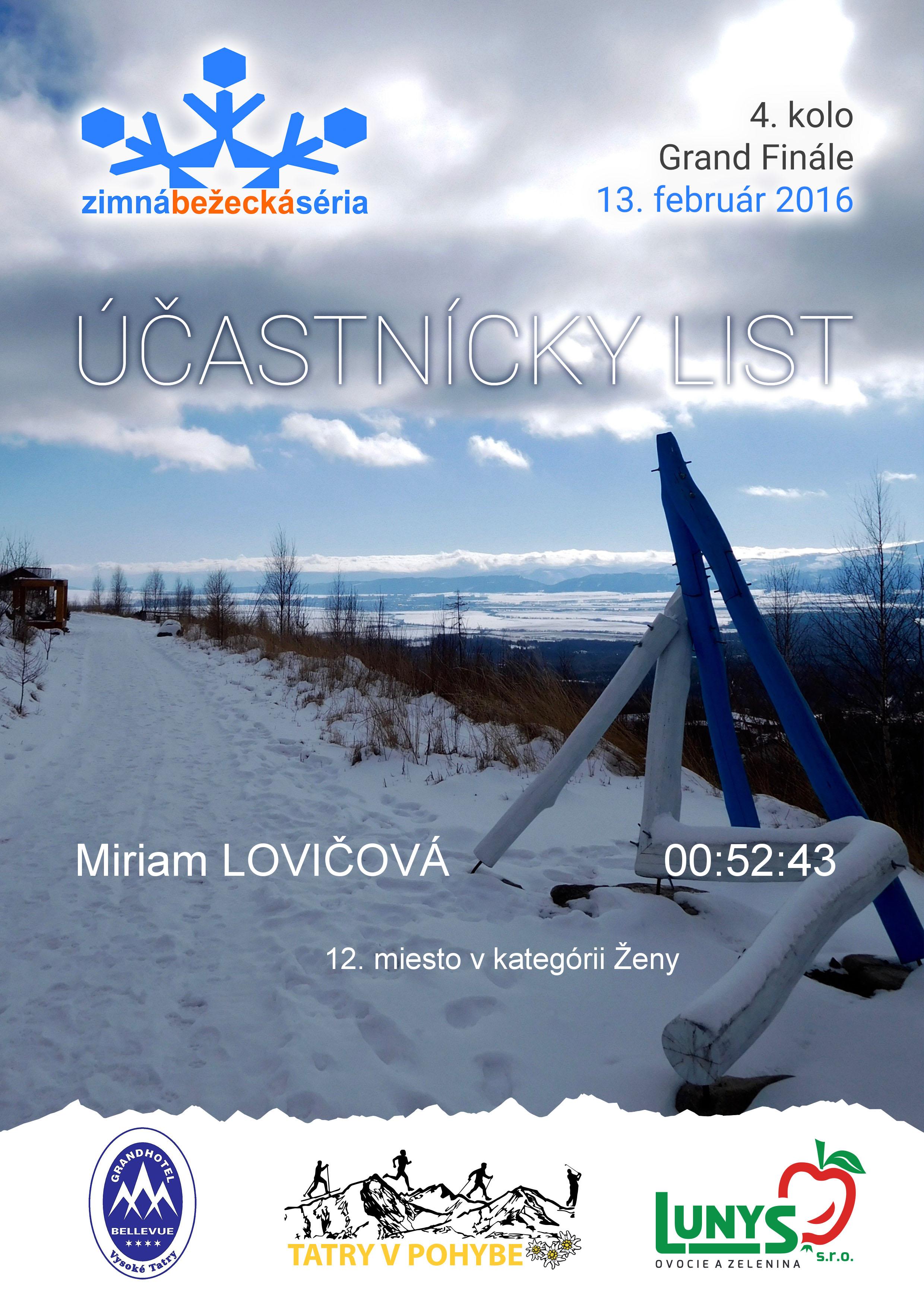 Účastnícky list pretekára LOVIČOVÁ Miriam