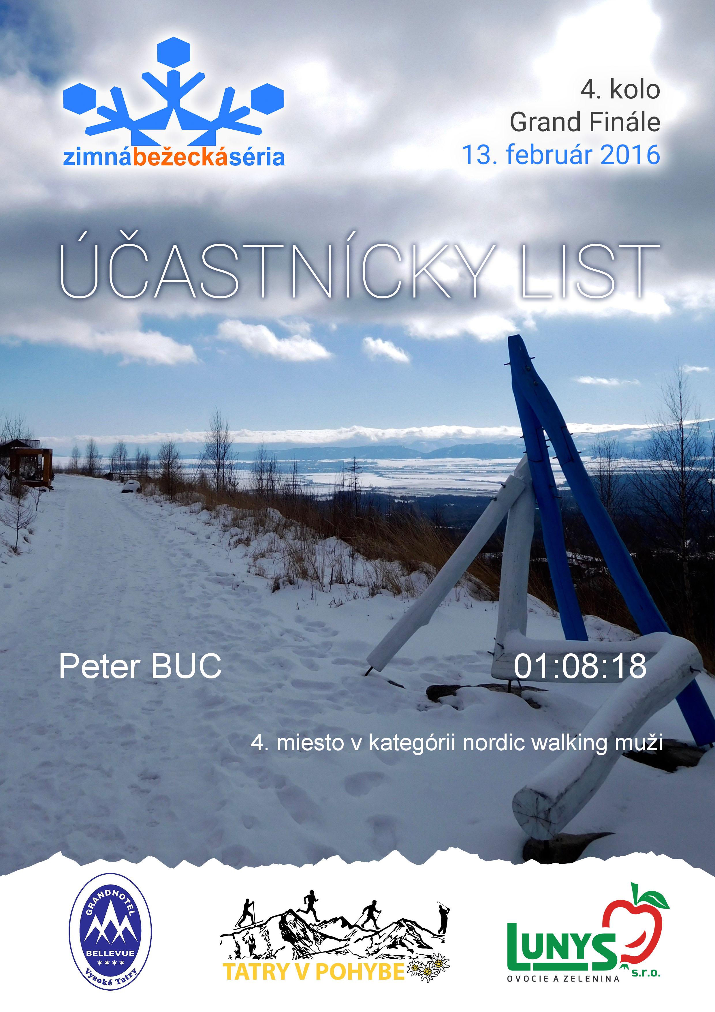 Účastnícky list pretekára BUC Peter