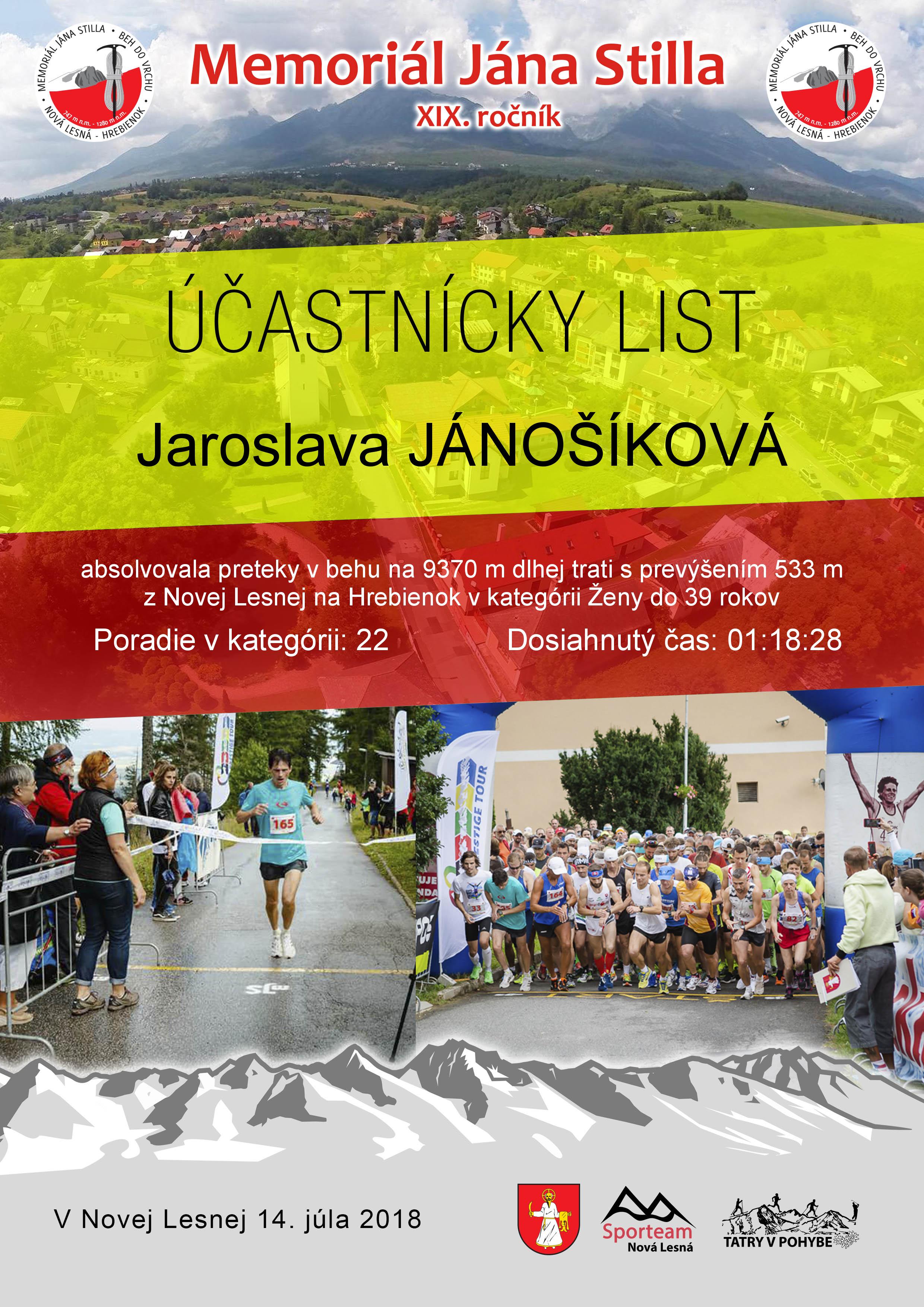 Účastnícky list pretekára JÁNOŠÍKOVÁ Jaroslava