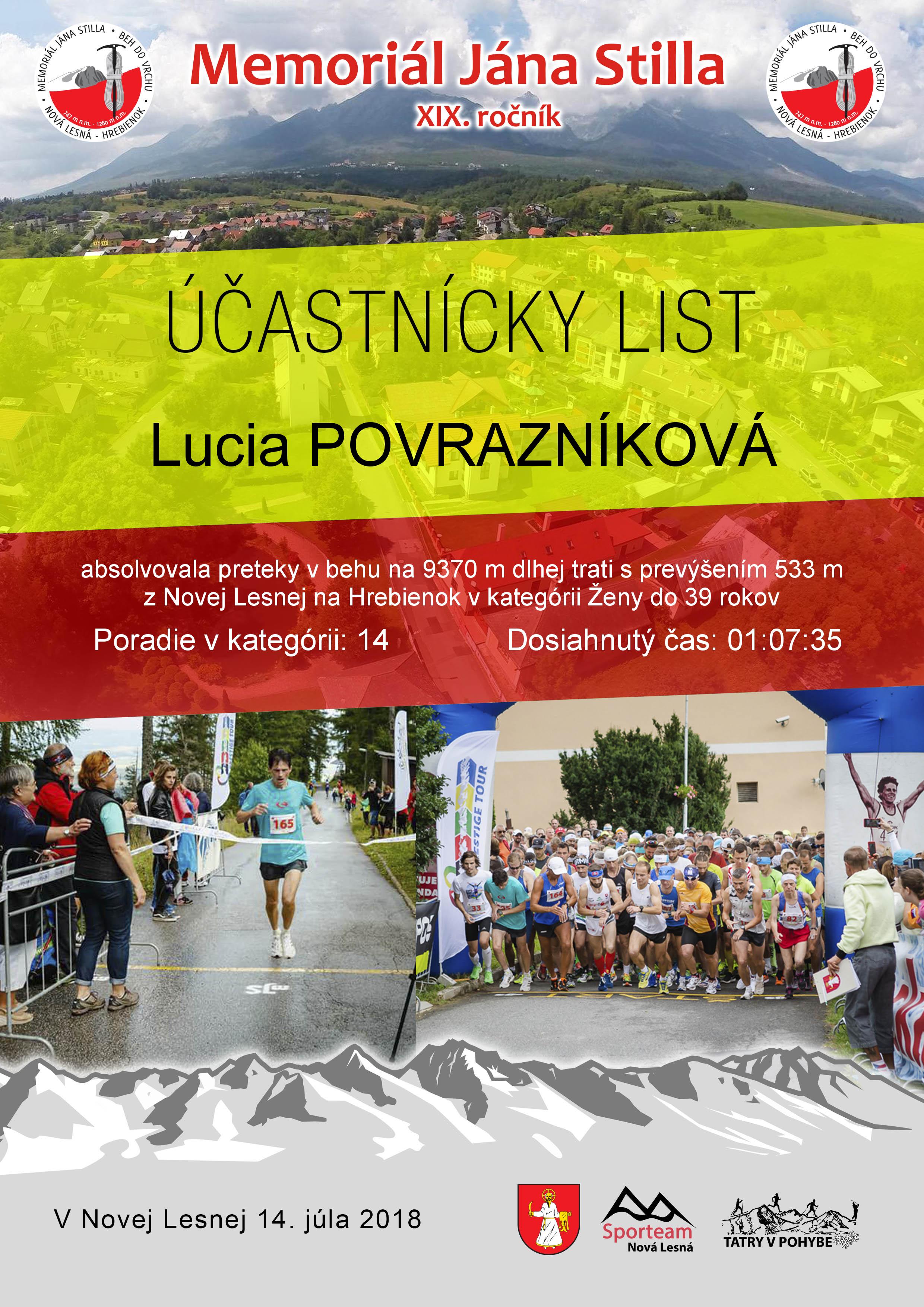 Účastnícky list pretekára POVRAZNÍKOVÁ Lucia