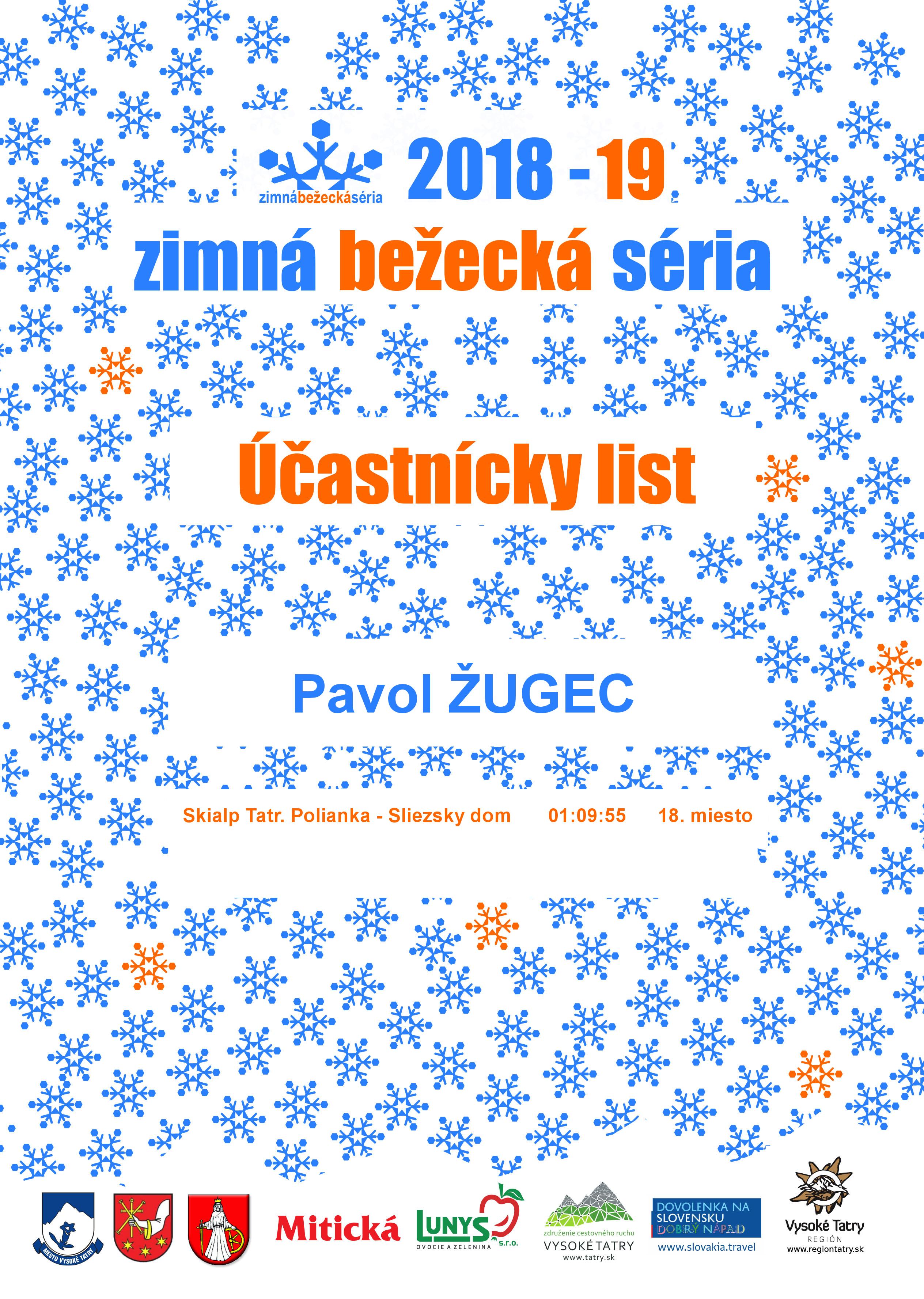 Účastnícky list pretekára ŽUGEC Pavol