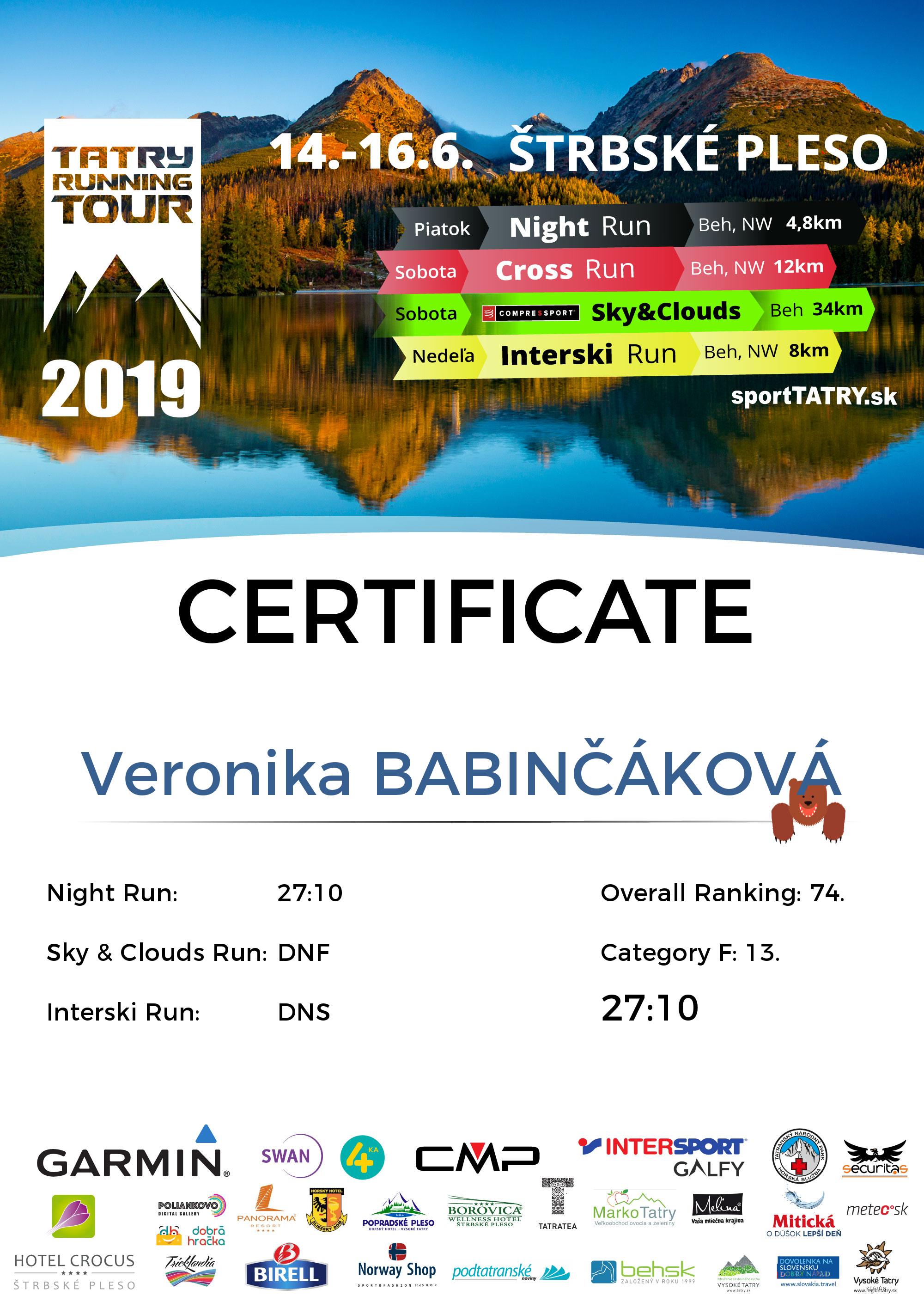 Účastnícky list: BABINČÁKOVÁ Veronika