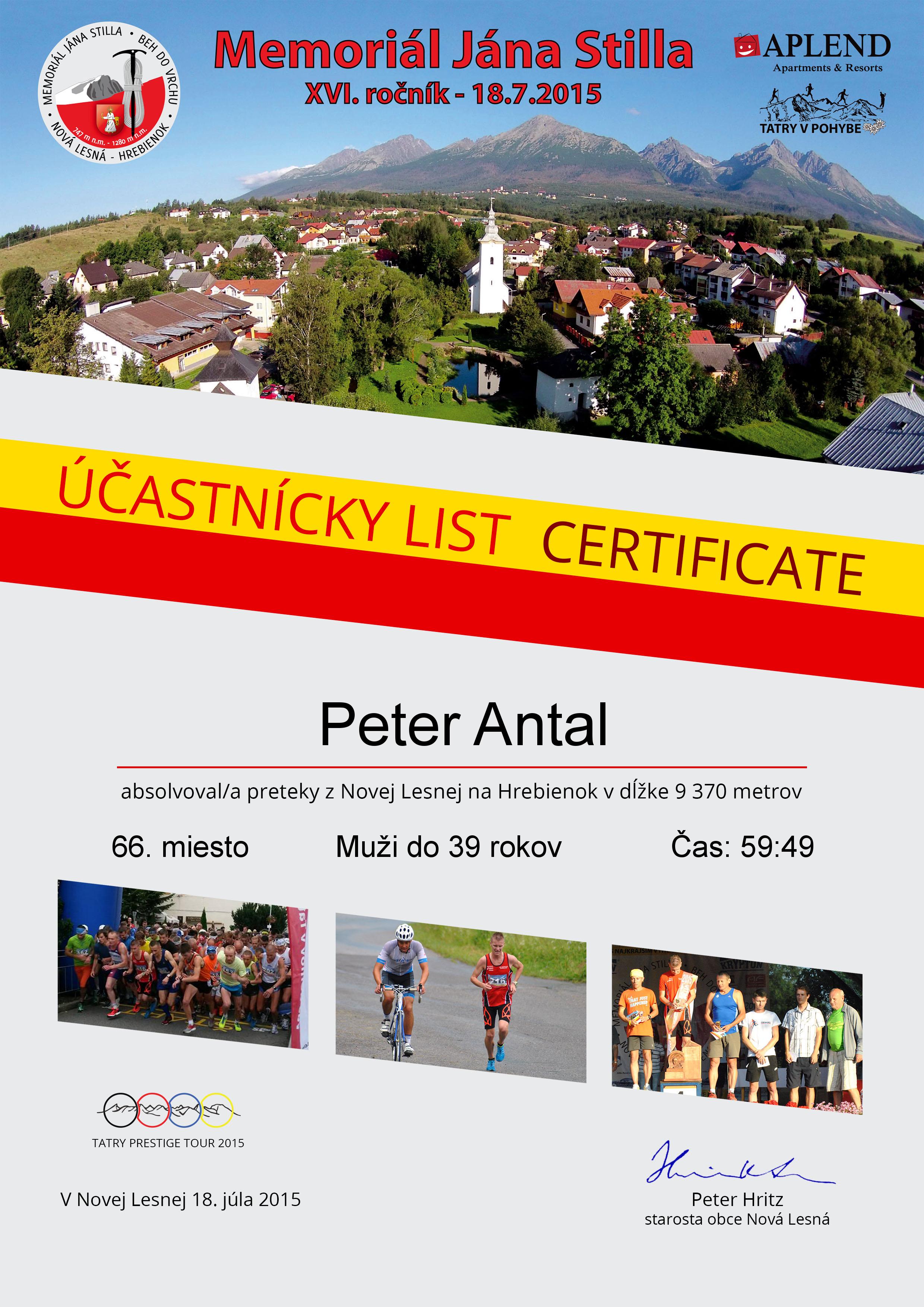 Účastnícky list pretekára Antal Peter