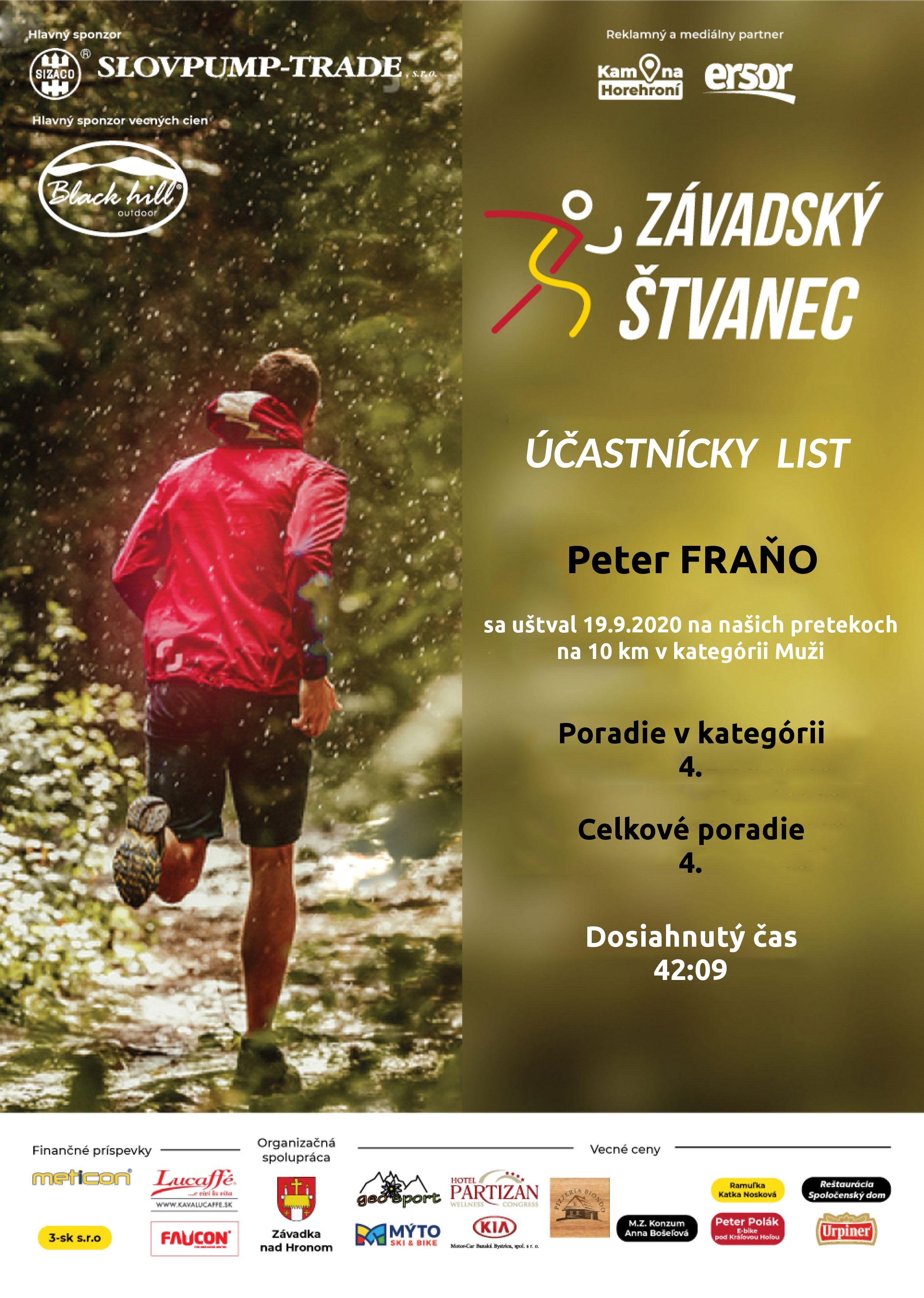 Účastnícky list pretekára FRAŇO Peter