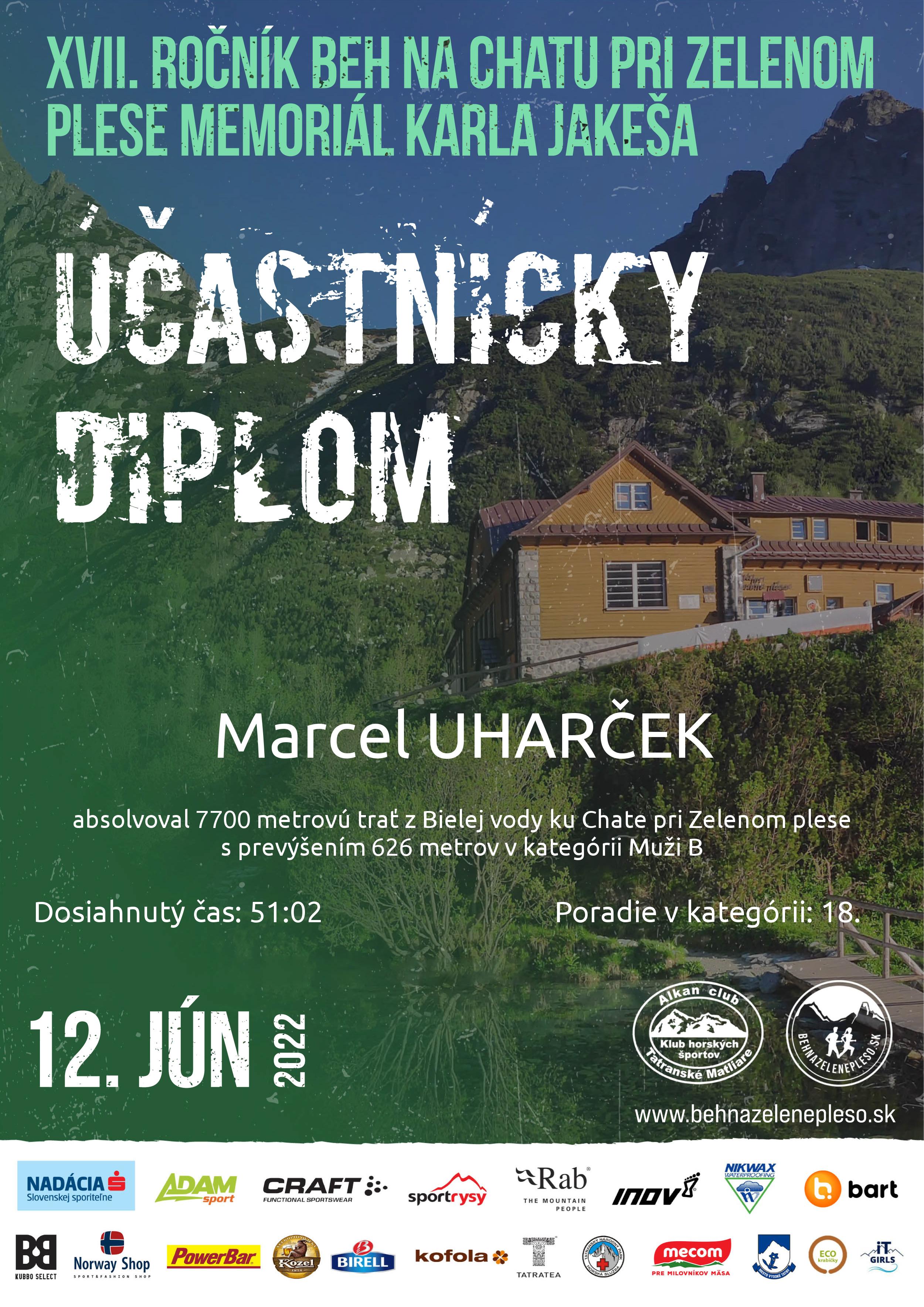 Účastnícky list pretekára UHARČEK Marcel