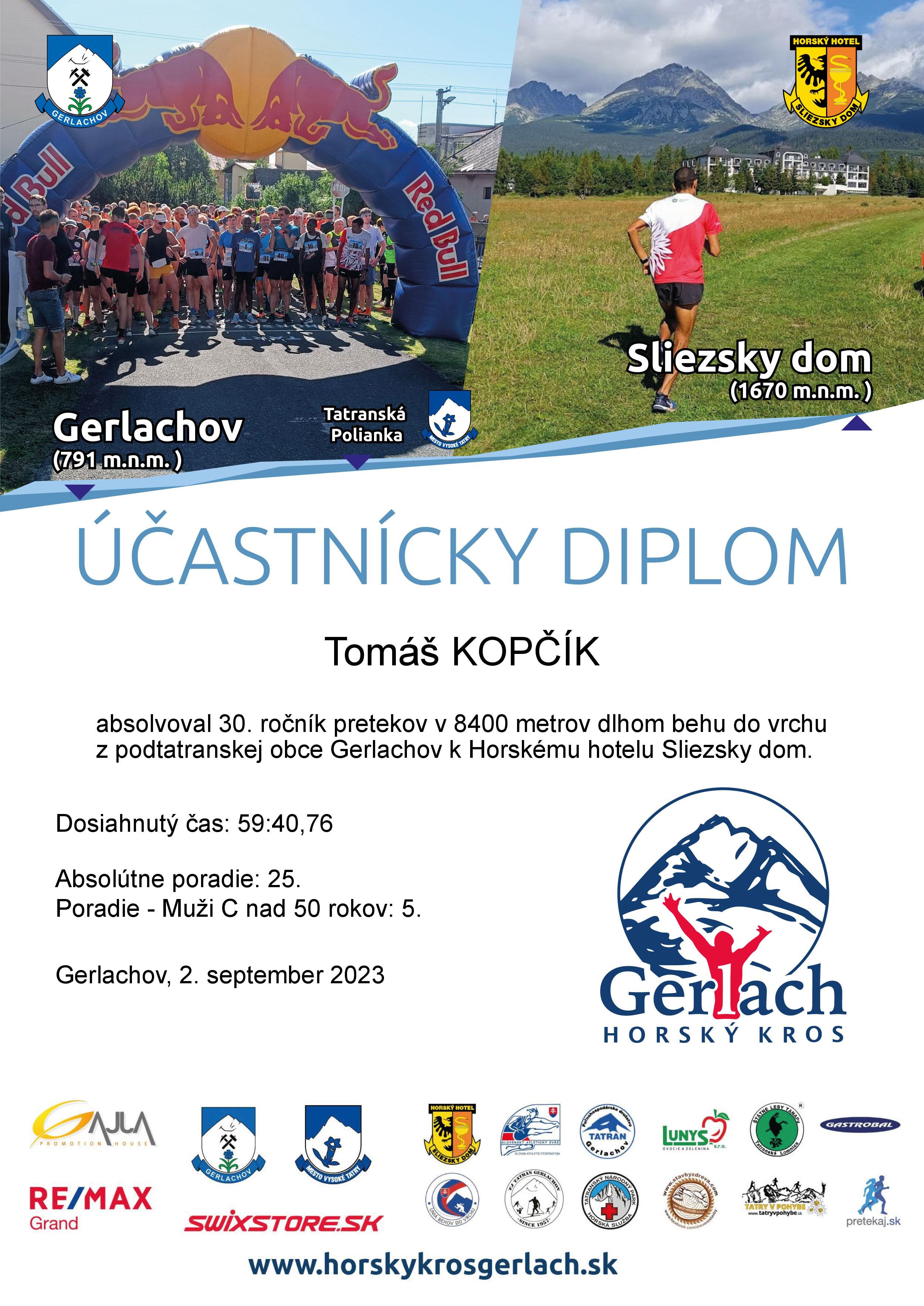 Účastnícky list pretekára KOPČÍK Tomáš