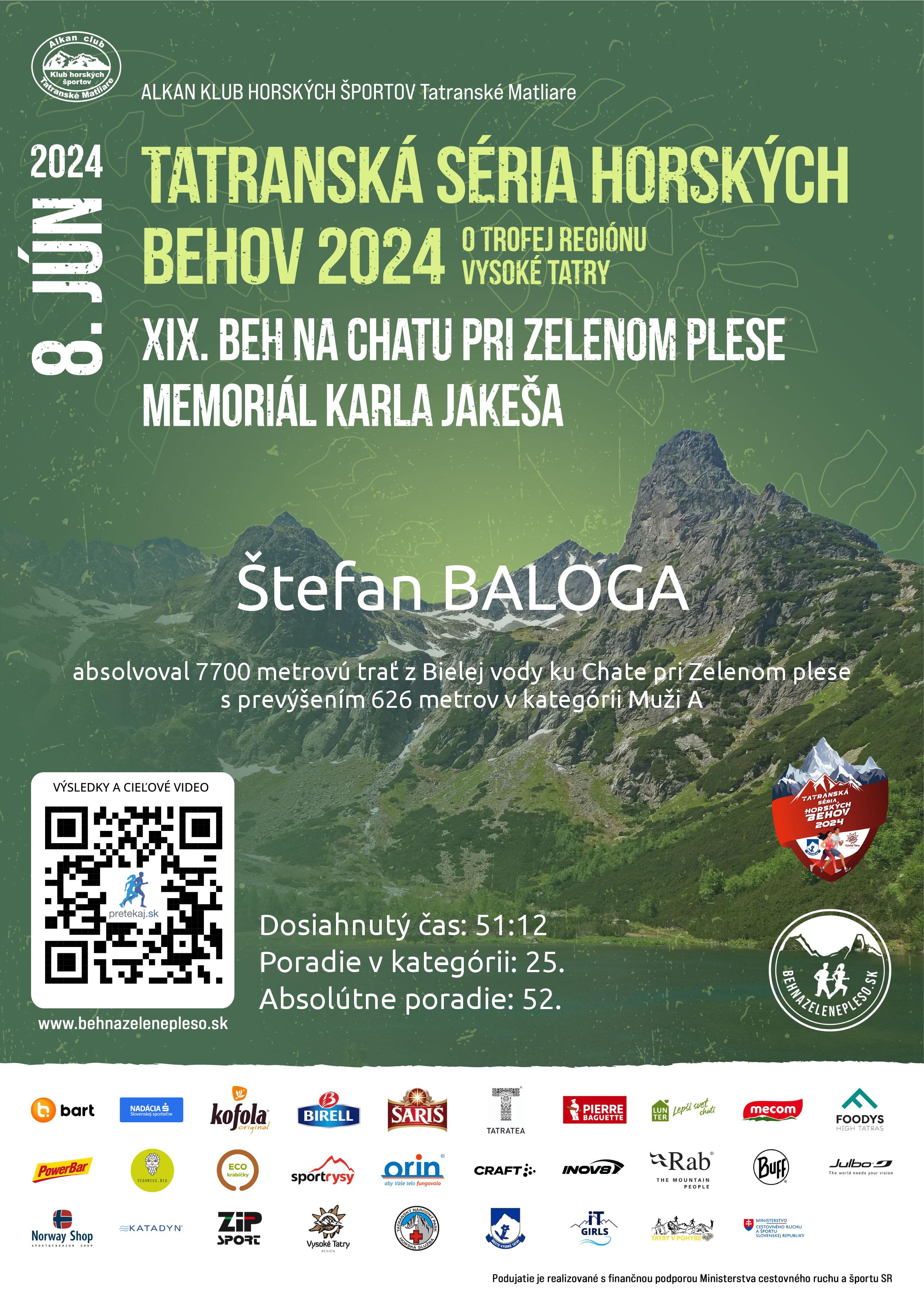 Účastnícky list pretekára BALOGA Štefan