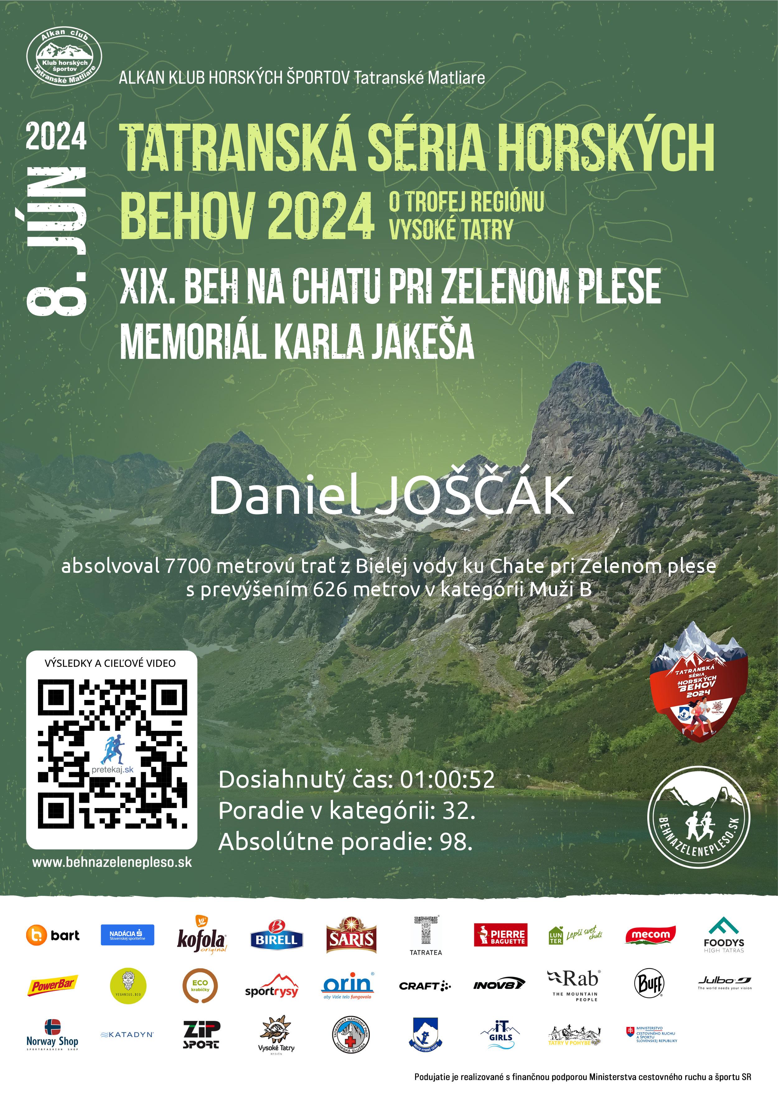 19. ročník atraktívnych pretekov v behu do vrchu, ktorý organizuje Alkan klub Horských športov a Sportrysy Club v spolupráci s Chatou pri Zelenom plese.