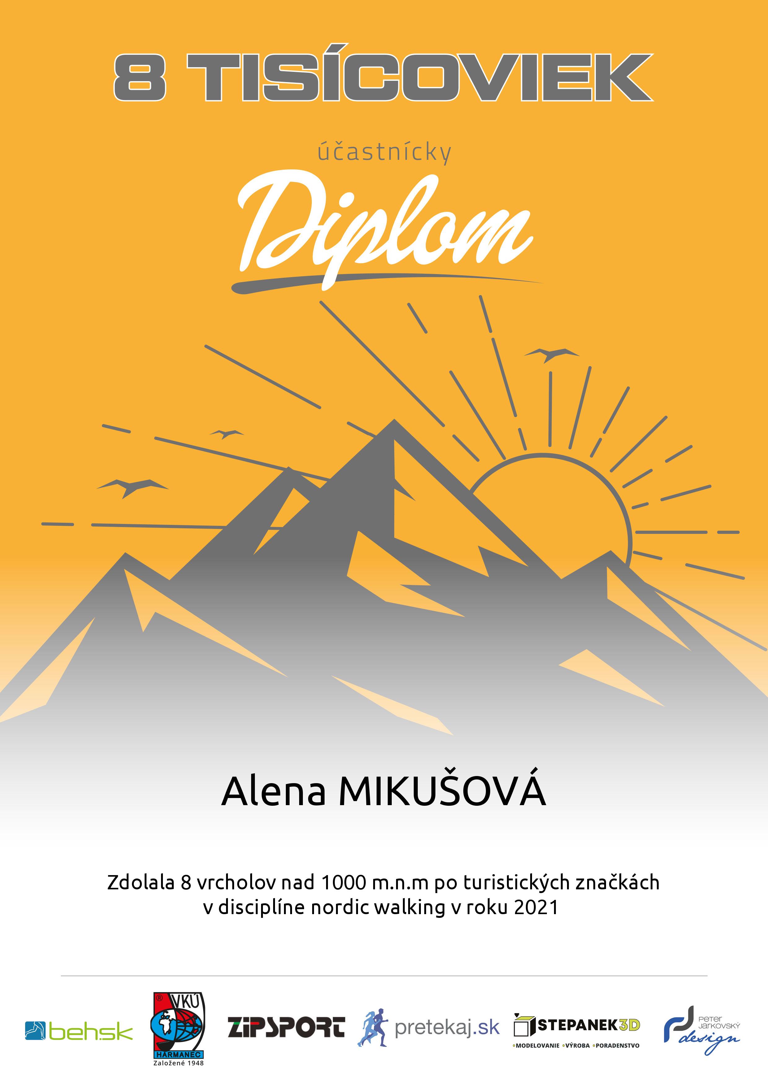 Účastnícky list pretekára MIKUŠOVÁ Alena