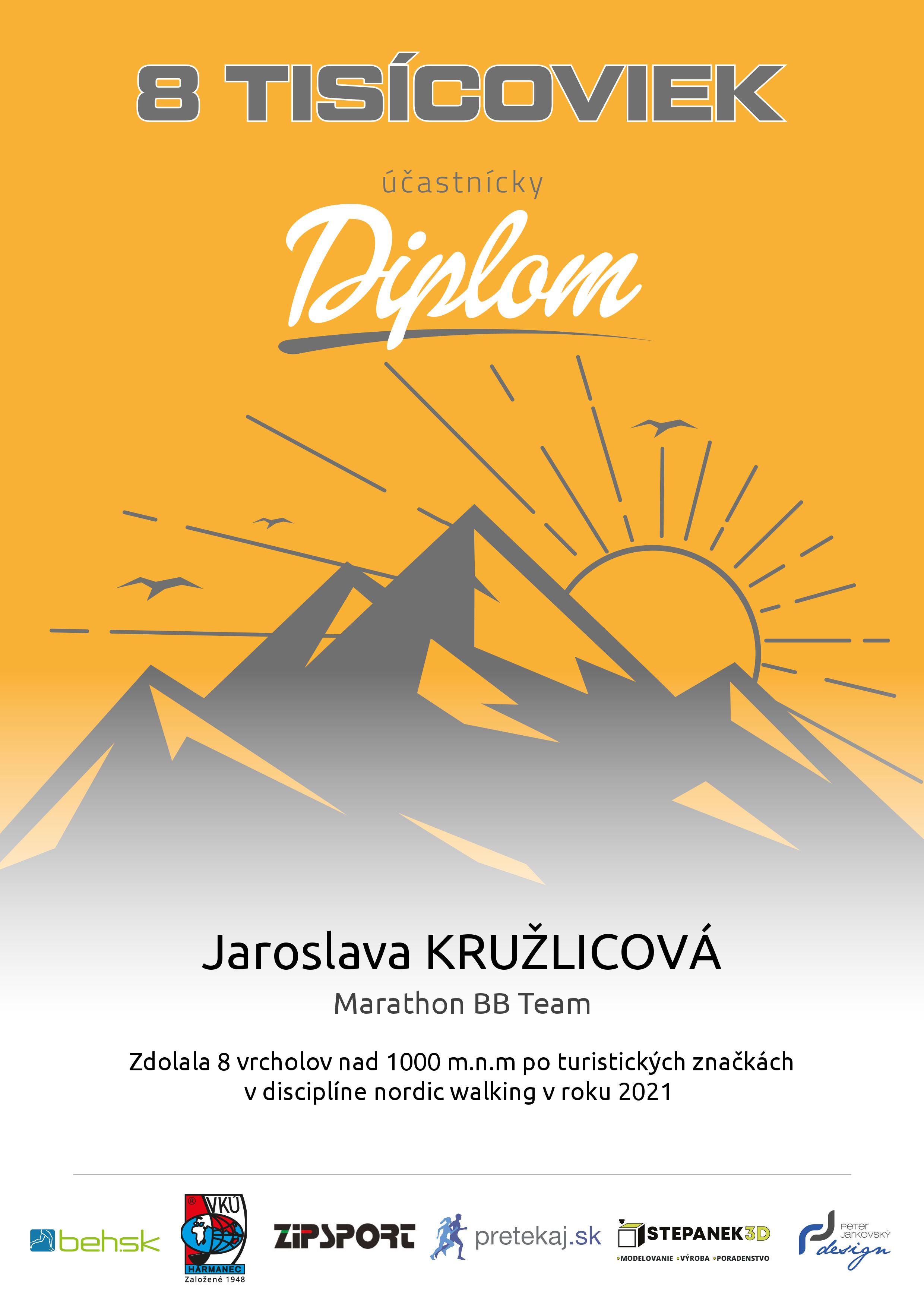Účastnícky list pretekára KRUŽLICOVÁ Jaroslava