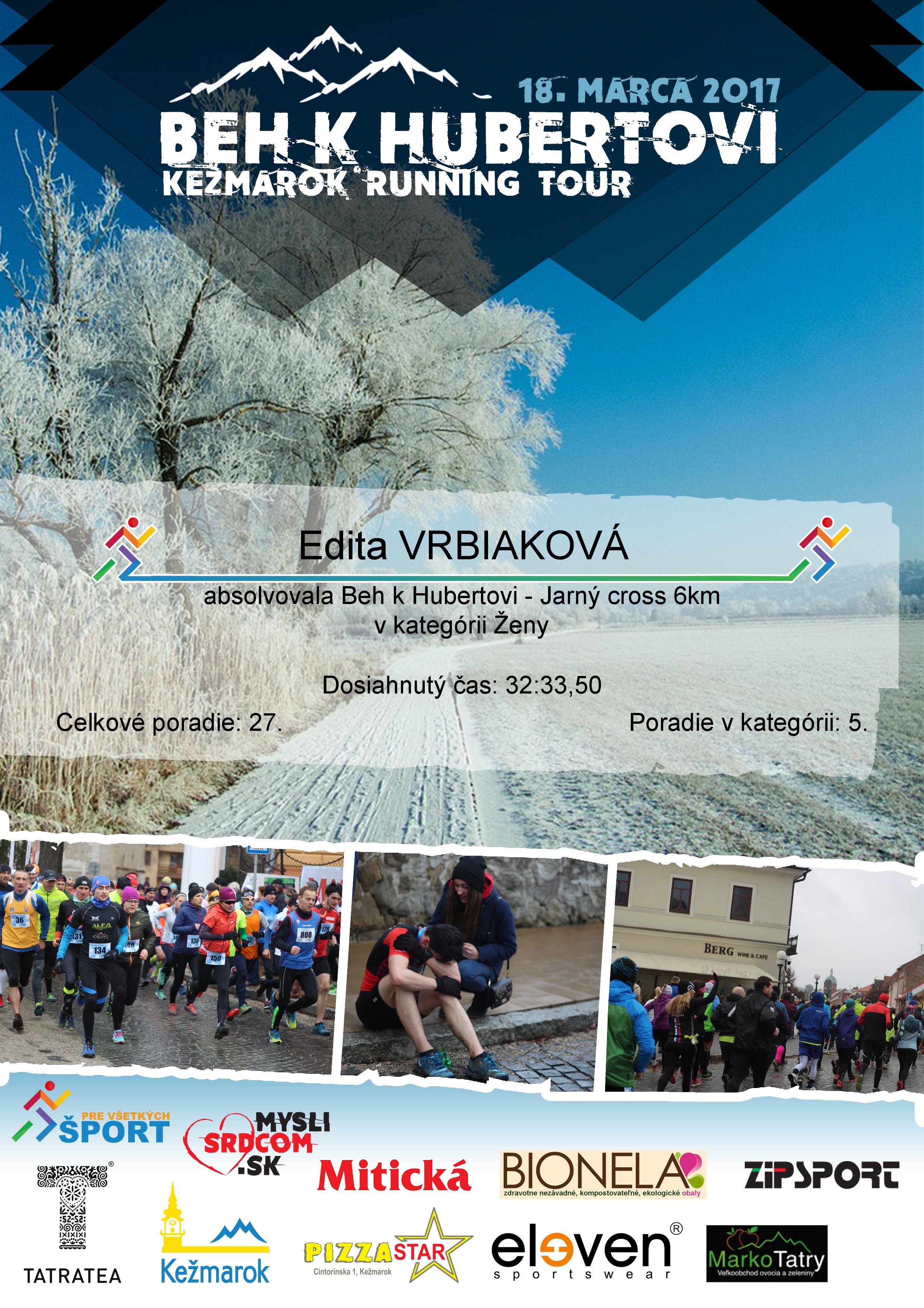 Účastnícky list pretekára VRBIAKOVÁ Edita