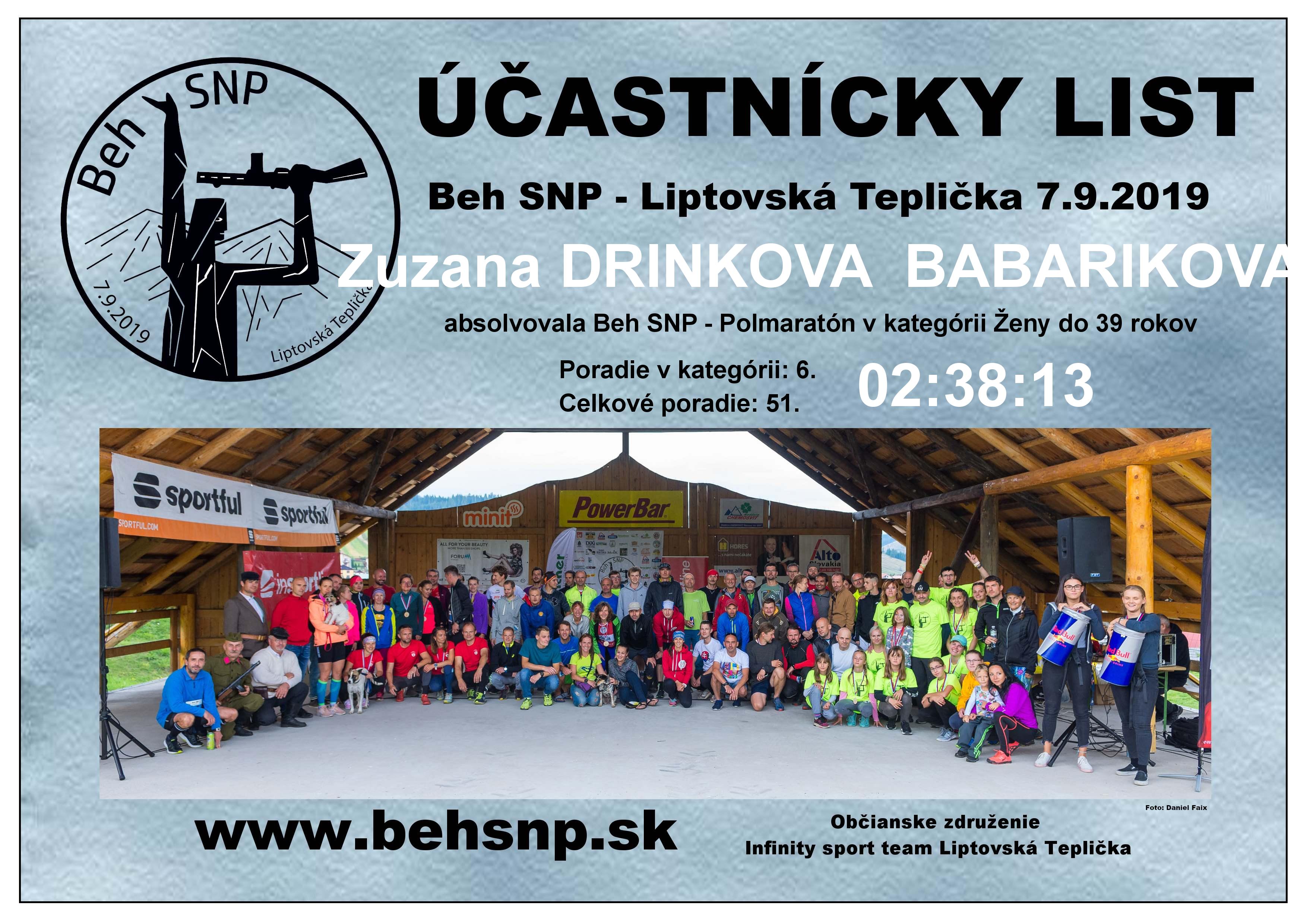 Účastnícky list pretekára DRINKOVA BABARIKOVA Zuzana