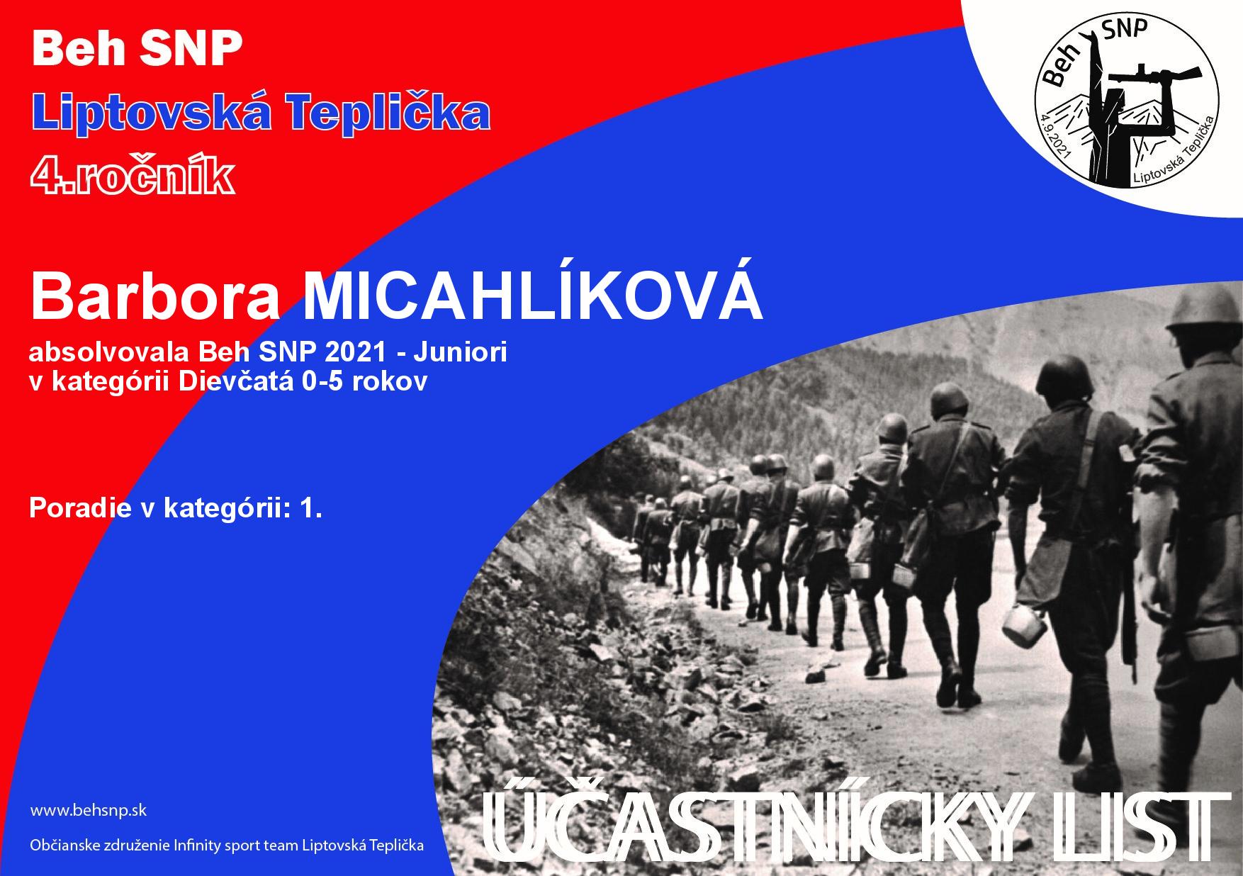 Účastnícky list pretekára MICAHLÍKOVÁ Barbora