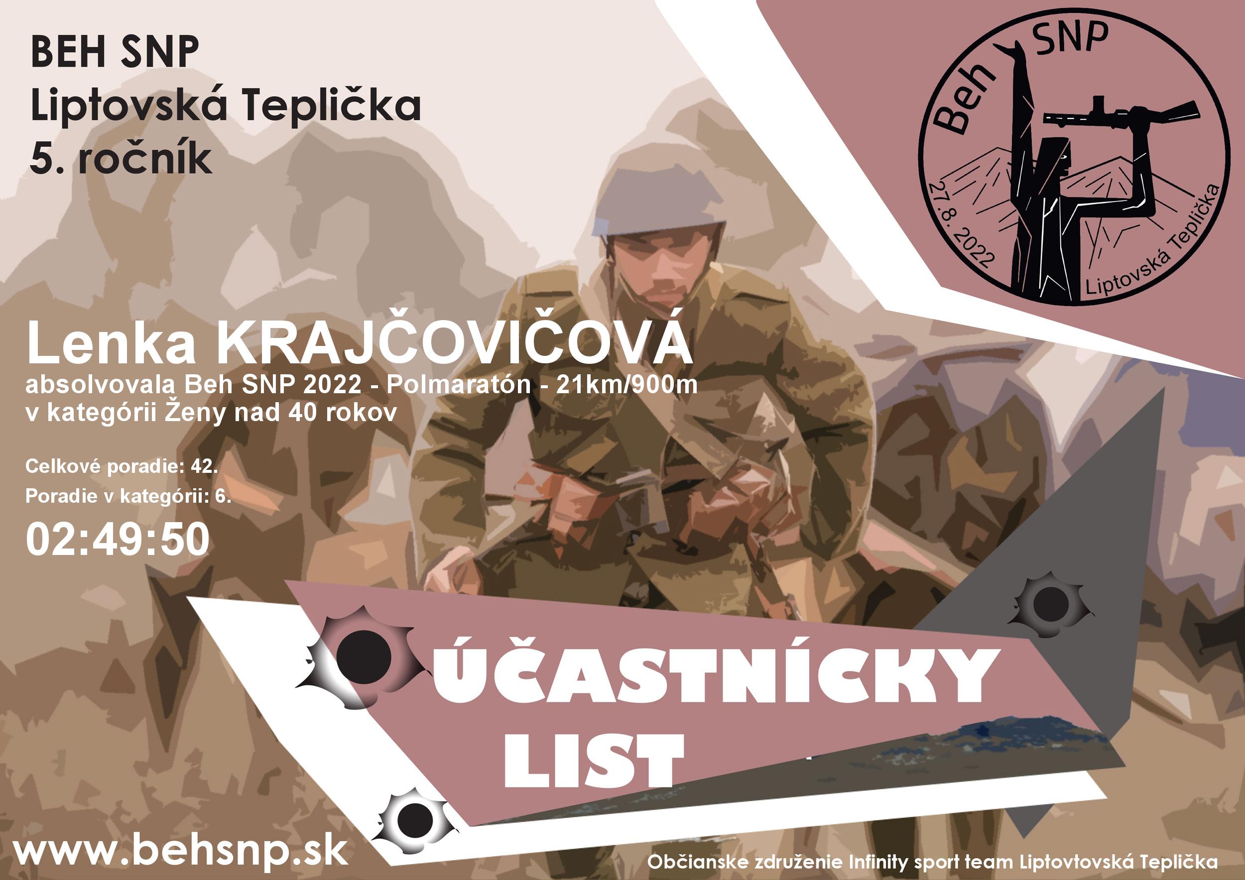 Účastnícky list pretekára KRAJČOVIČOVÁ Lenka