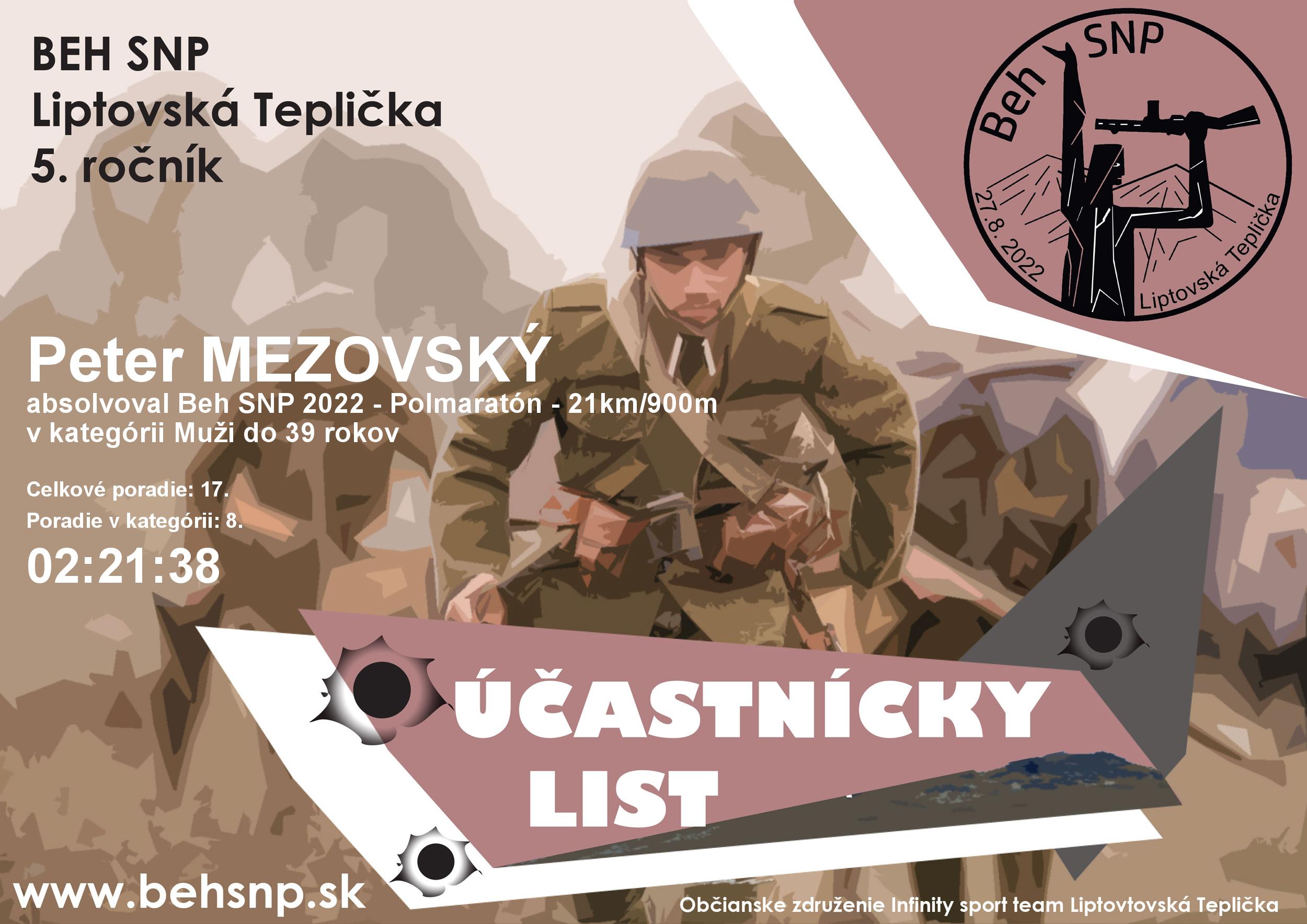 Účastnícky list pretekára MEZOVSKÝ Peter