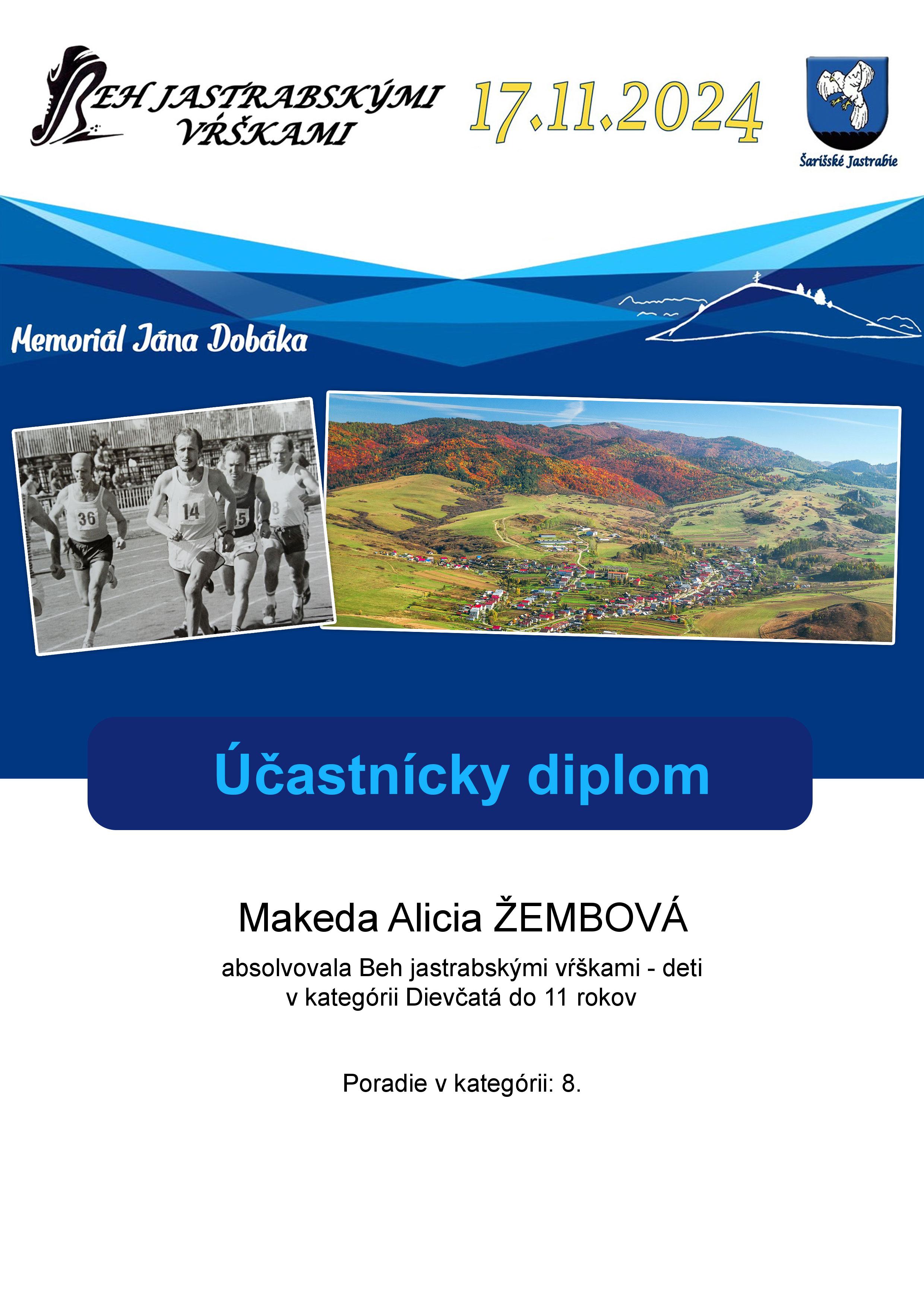 Účastnícky list pretekára ŽEMBOVÁ Makeda Alicia