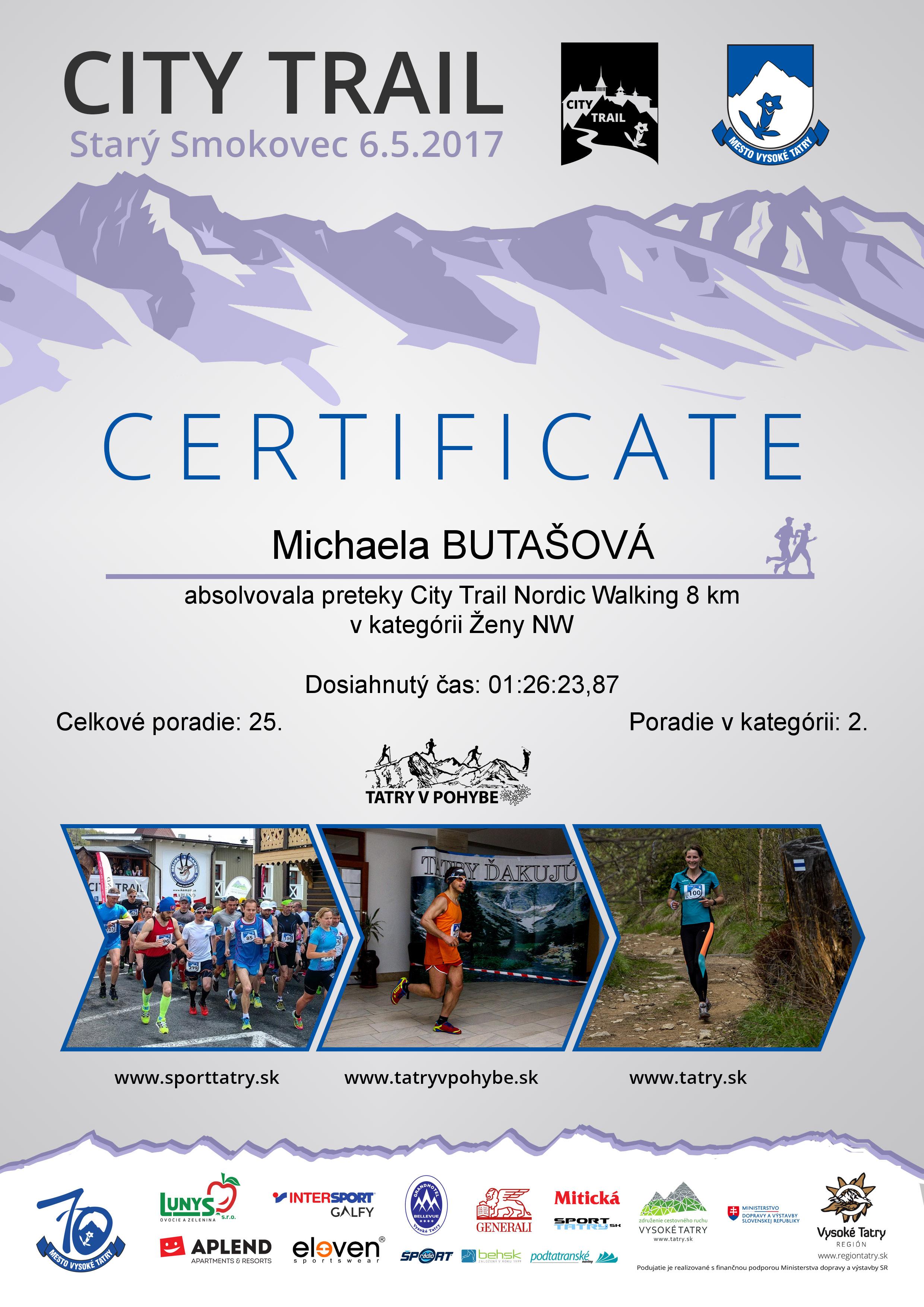 Účastnícky list pretekára BUTAŠOVÁ Michaela