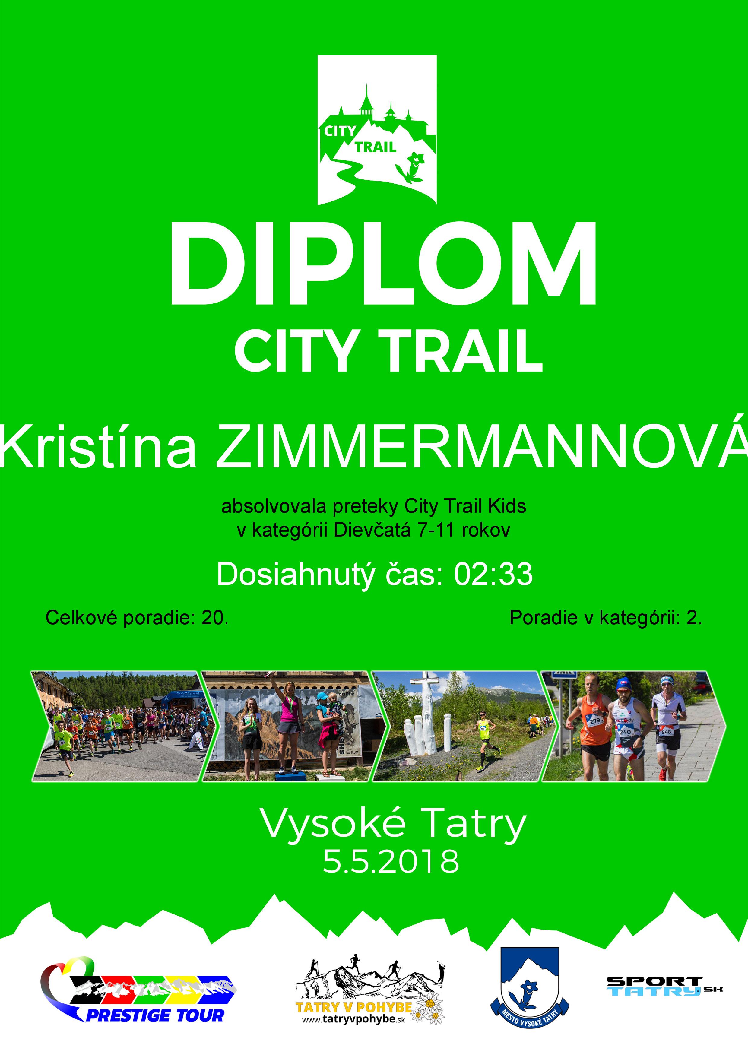Účastnícky list pretekára ZIMMERMANNOVÁ Kristína