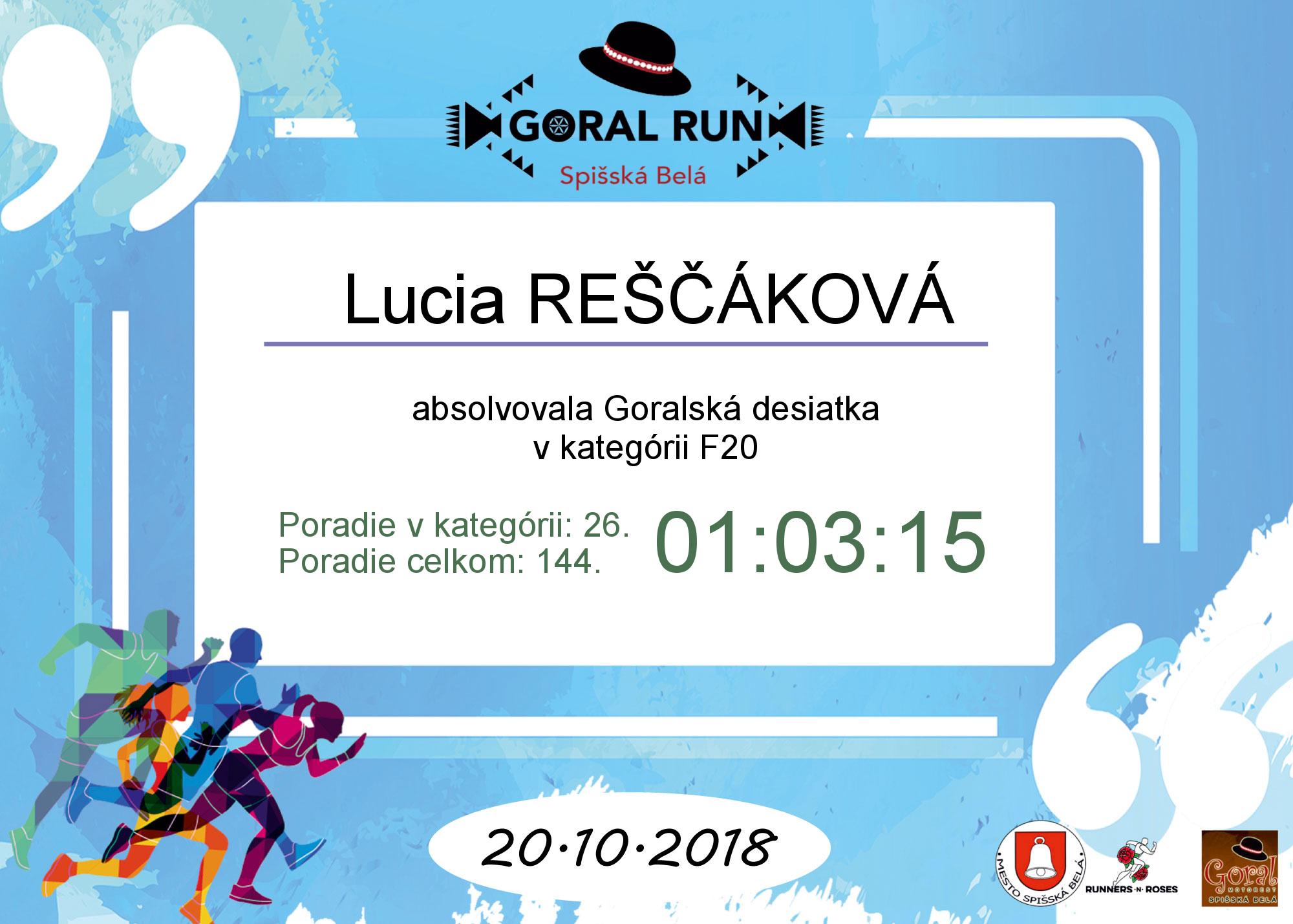 Účastnícky list pretekára REŠČÁKOVÁ Lucia