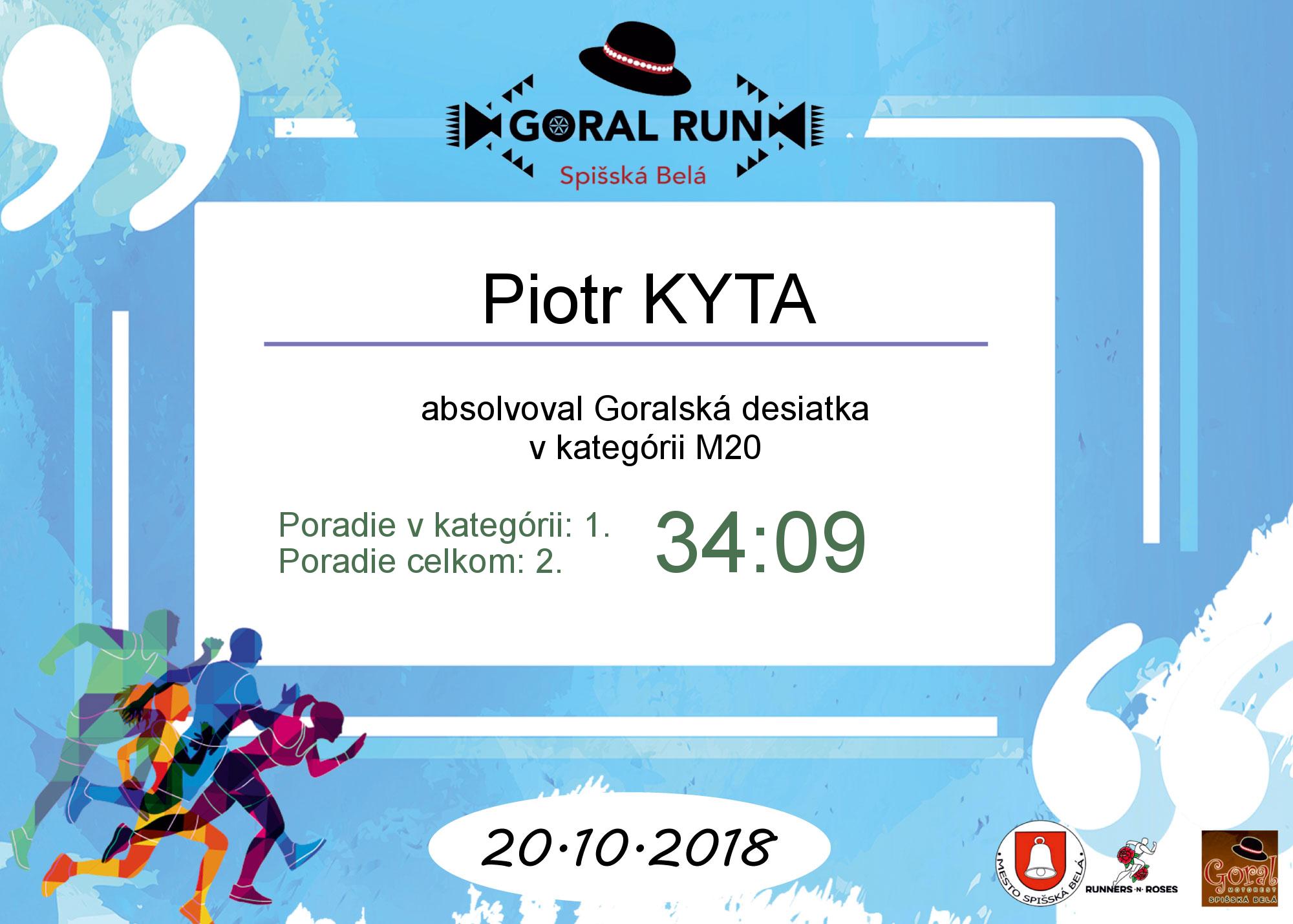 Účastnícky list pretekára KYTA Piotr