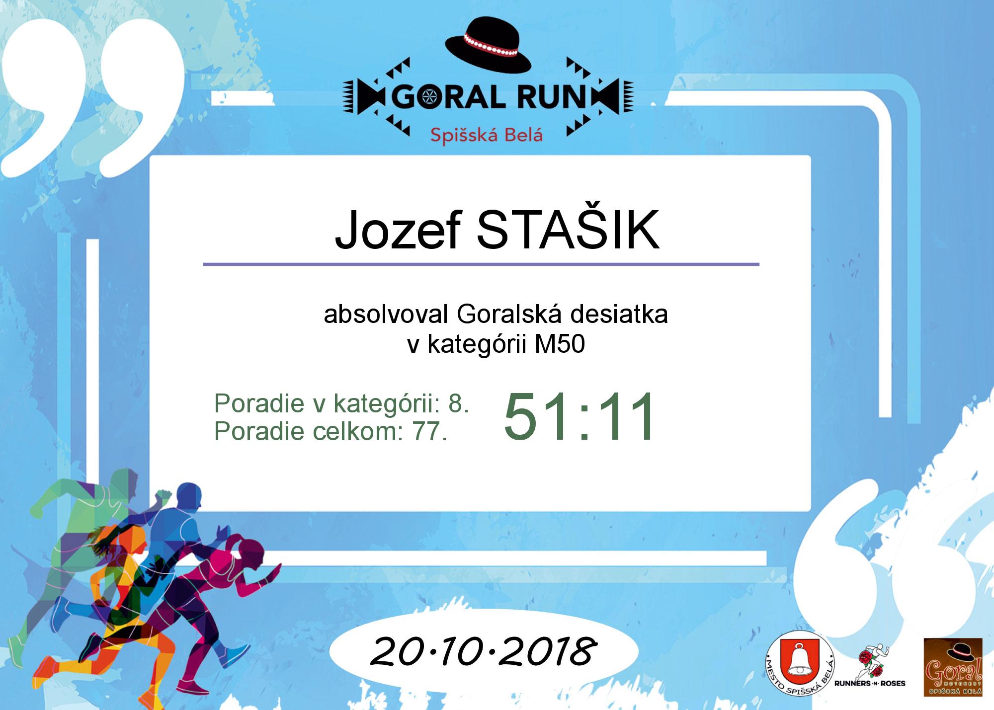 Účastnícky list pretekára STAŠIK Jozef