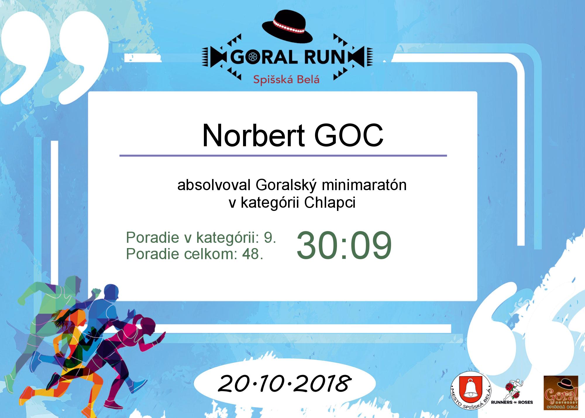 Účastnícky list pretekára GOC Norbert