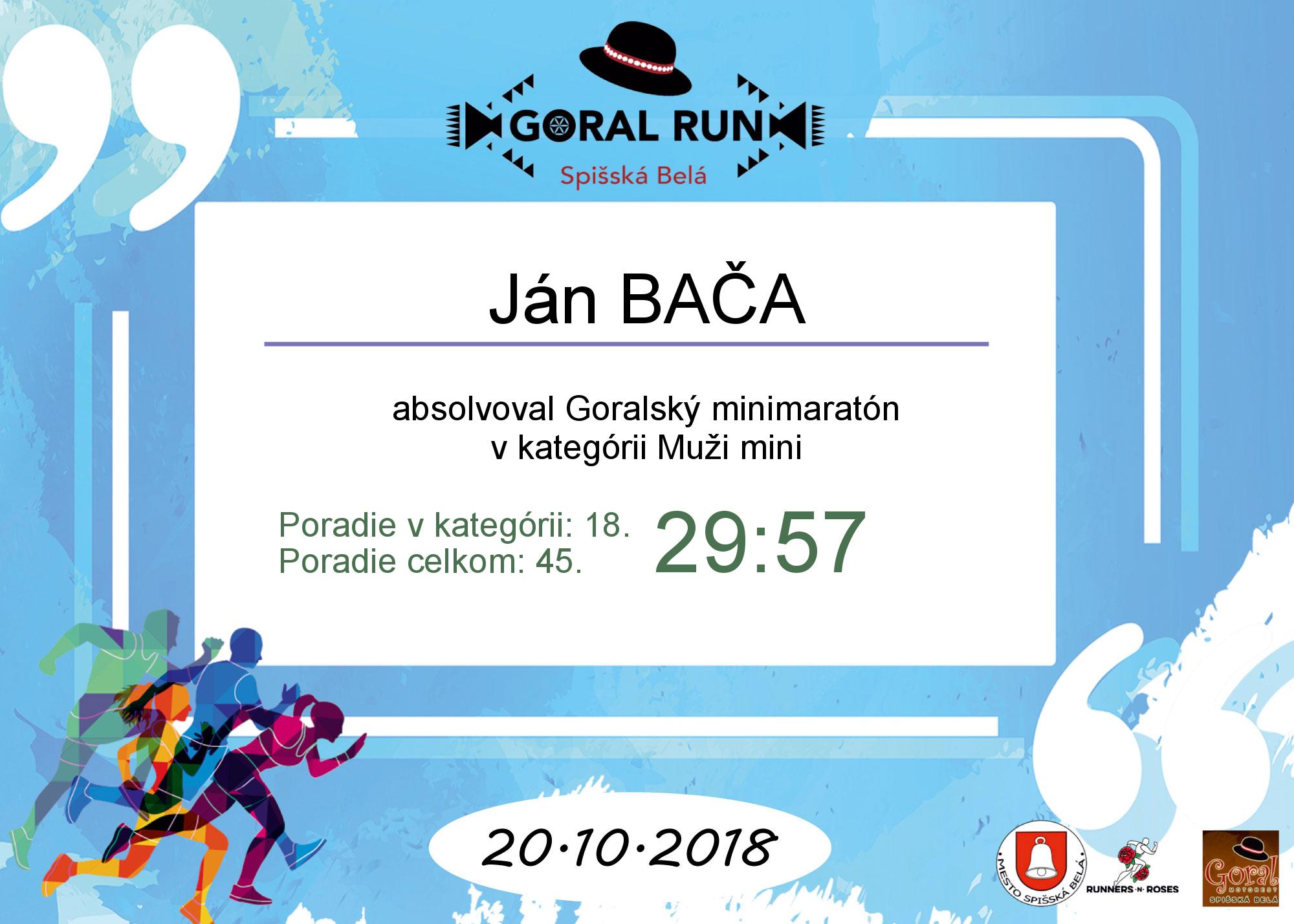 Účastnícky list pretekára BAČA Ján
