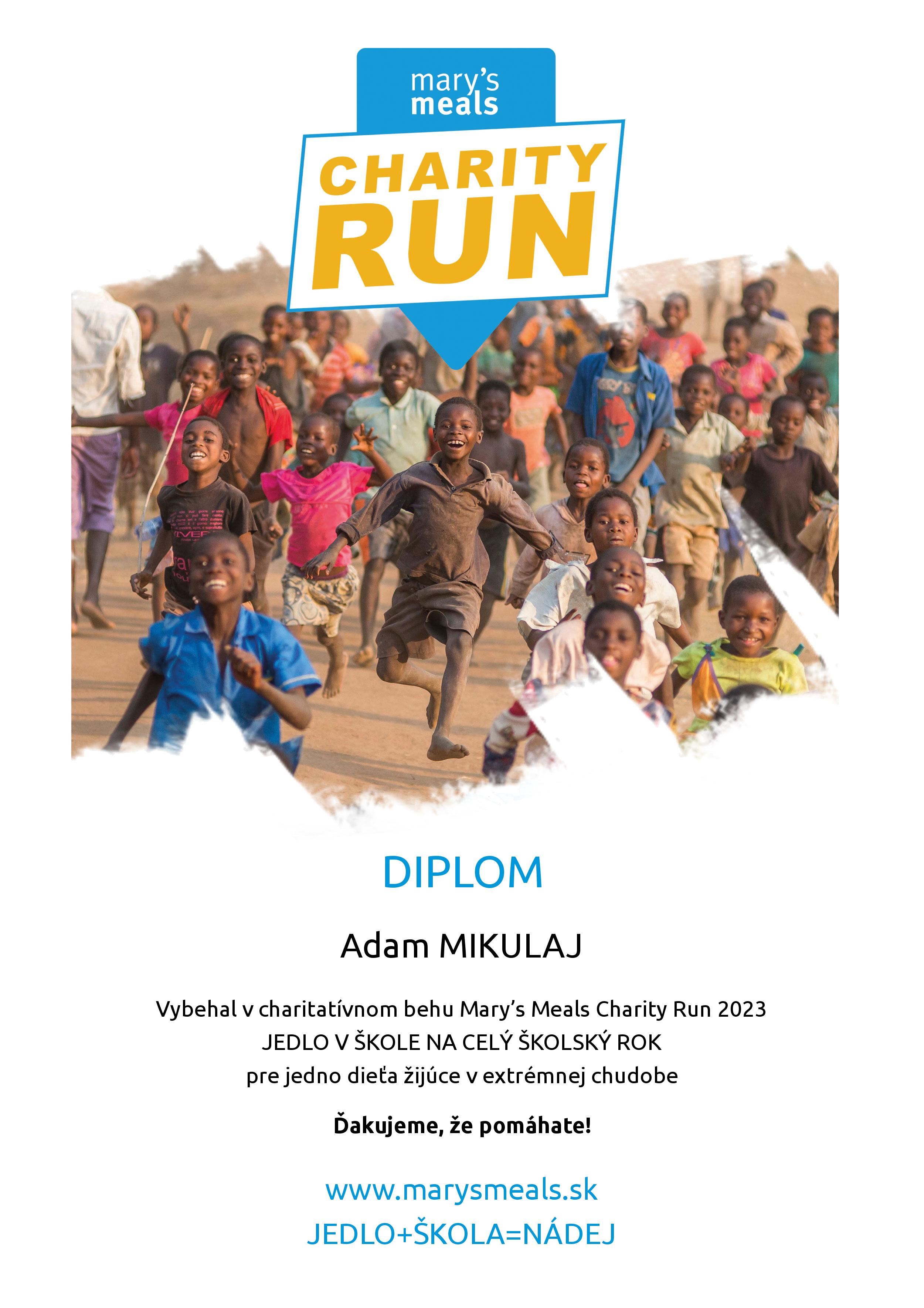 Charitatívny beh Mary’s Meals Charity Run je výnimočný beh, ktorého štartovné pomáha hladujúcim deťom. Mary's Meals je charitatívne dielo, ktoré poskytuje jedlo v škole už pre vyše 2,4 milióna detí žijúcich v extrémnej chudobe s cieľom dostať ich do školy a vzdelávať. Celá výška štartovného ide na podporu projektu a pokryje náklady na stravovanie jedného dieťaťa počas celého školského roka.