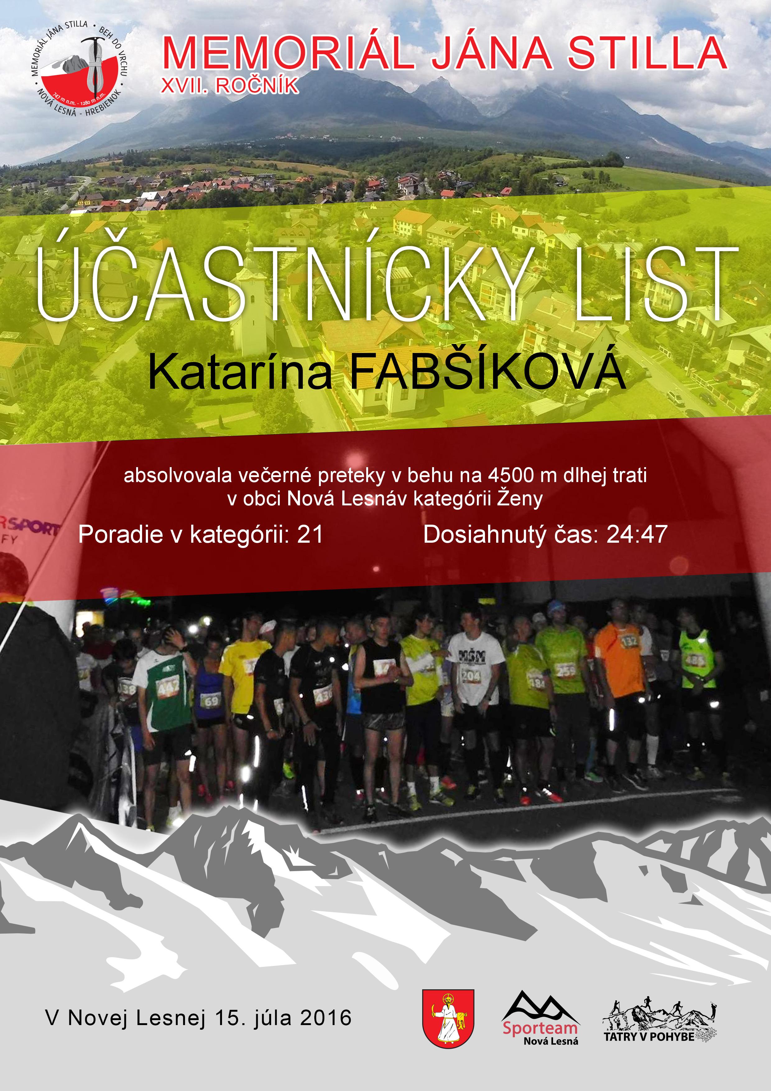 Účastnícky list pretekára FABŠÍKOVÁ Katarína