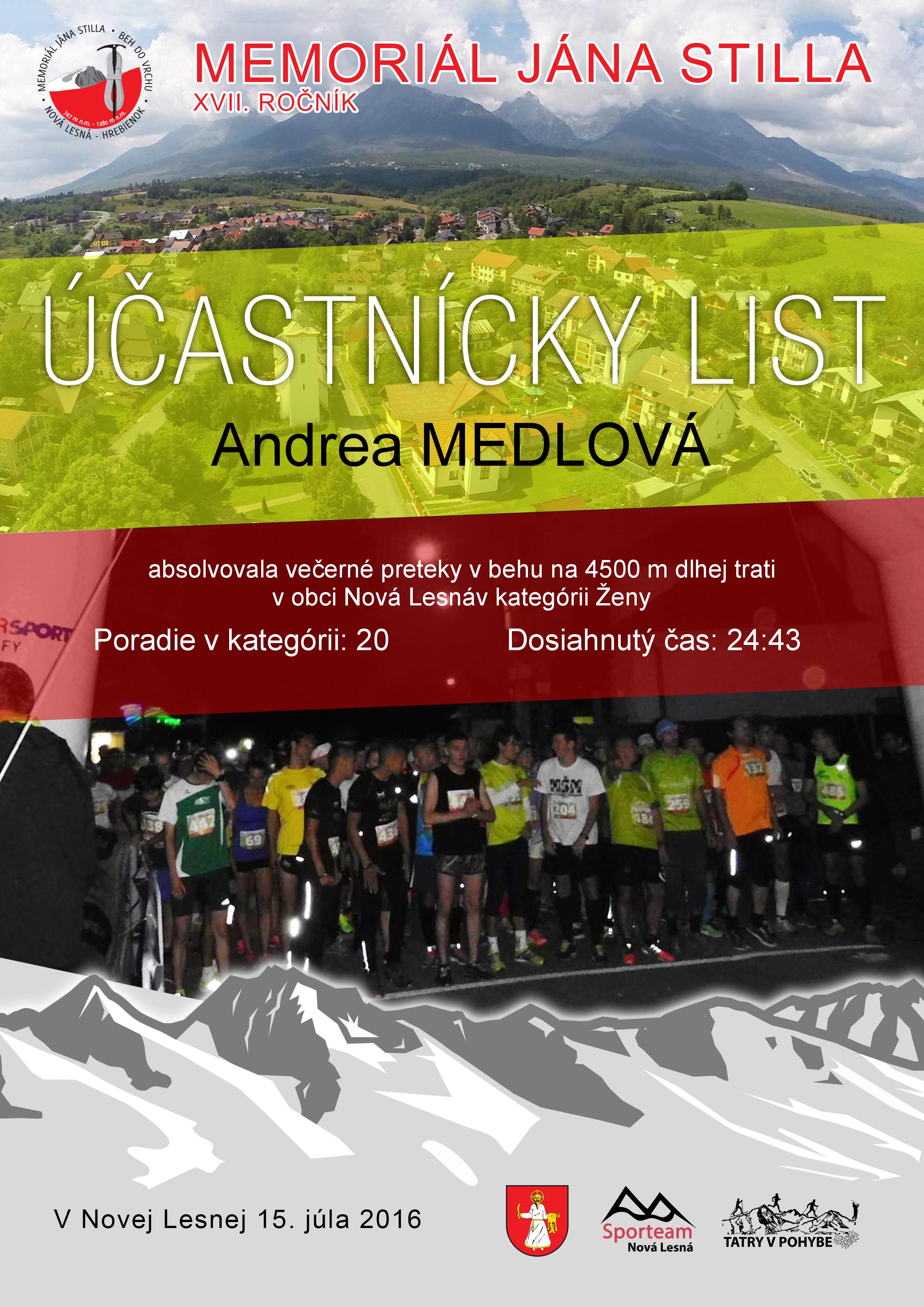 Účastnícky list pretekára MEDLOVÁ Andrea