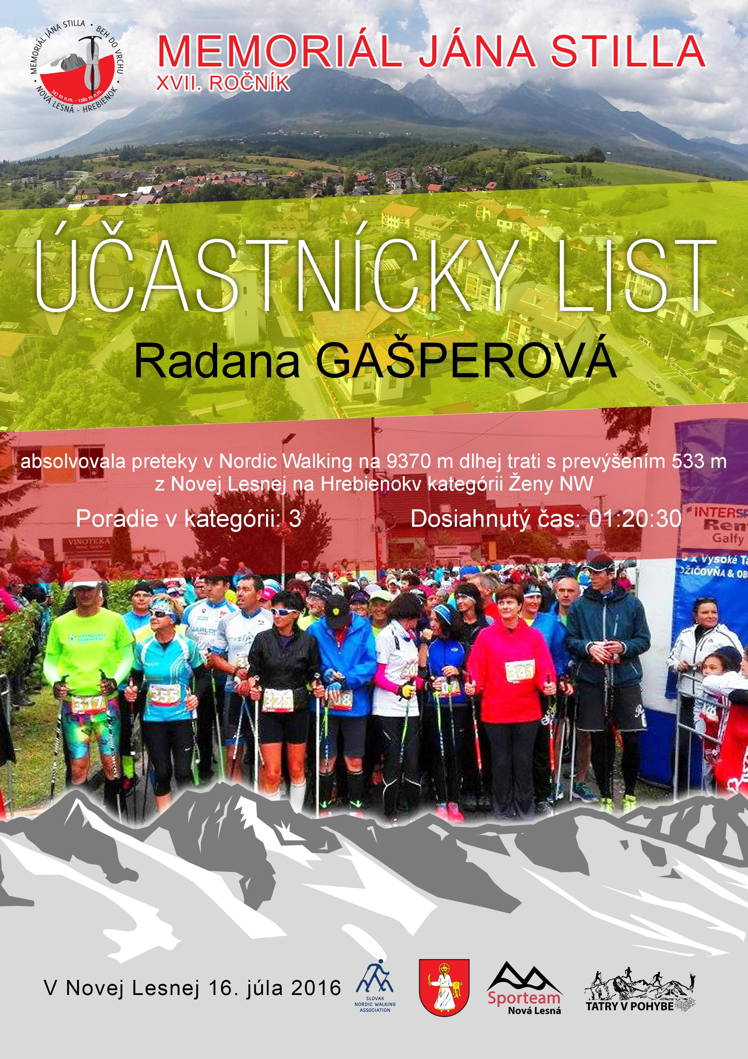 Účastnícky list pretekára GAŠPEROVÁ Radana