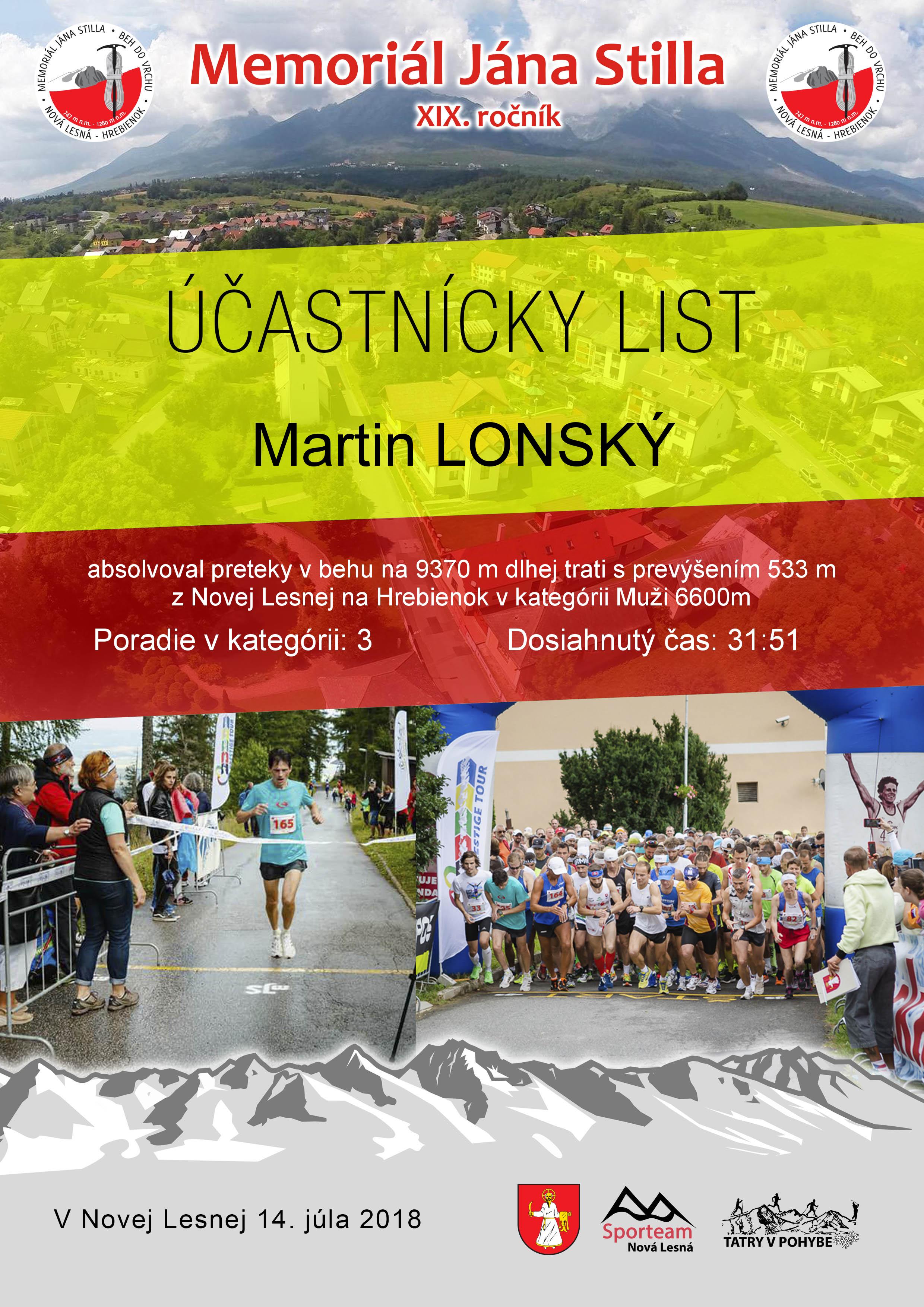 Účastnícky list pretekára LONSKÝ Martin