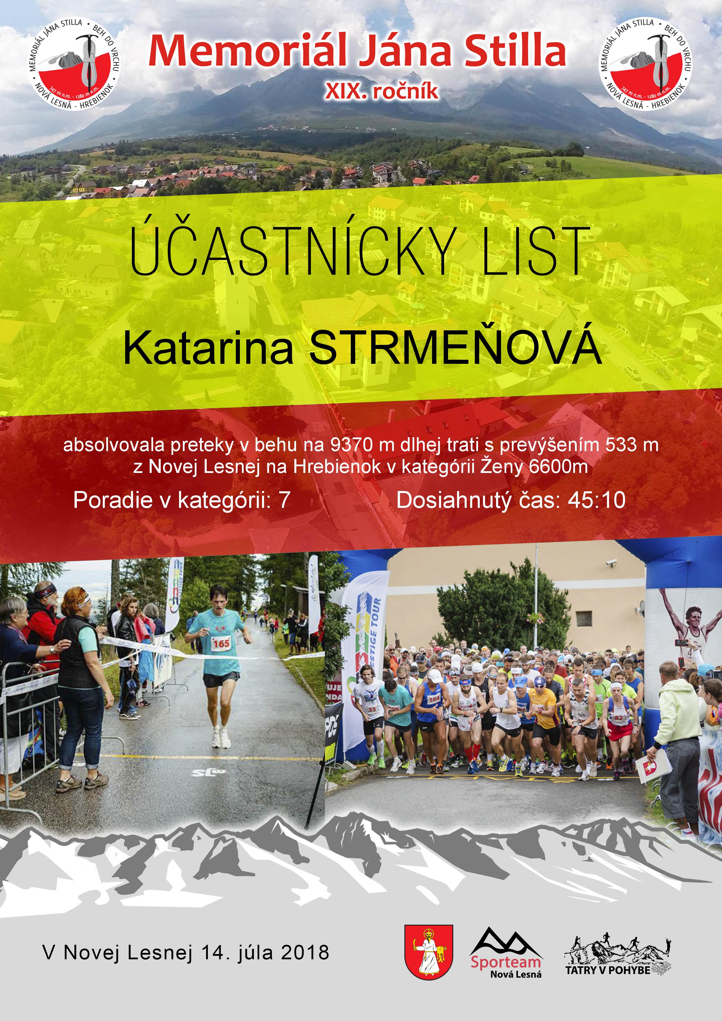 Účastnícky list pretekára STRMEŇOVÁ Katarina