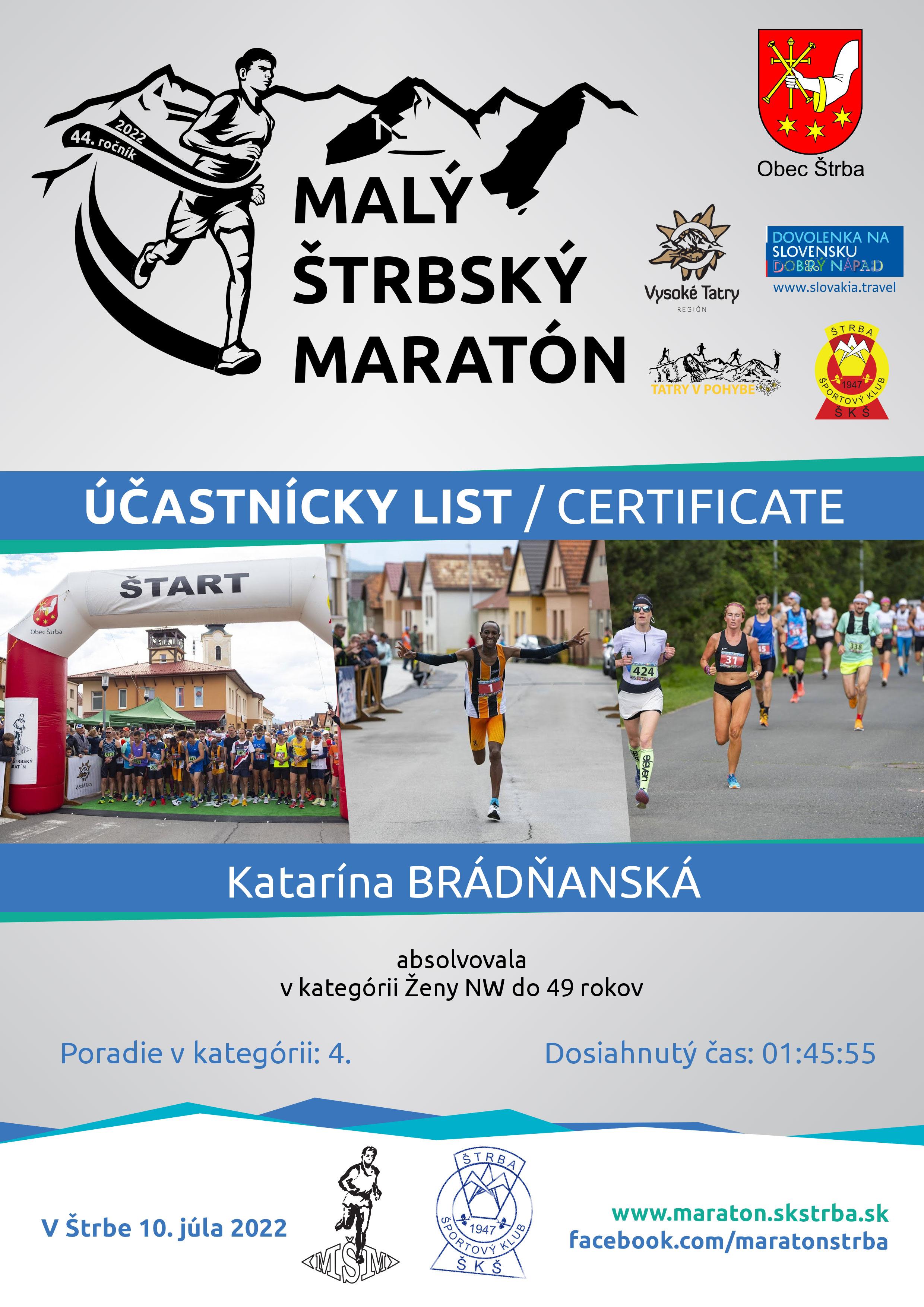 Účastnícky list pretekára BRÁDŇANSKÁ Katarína